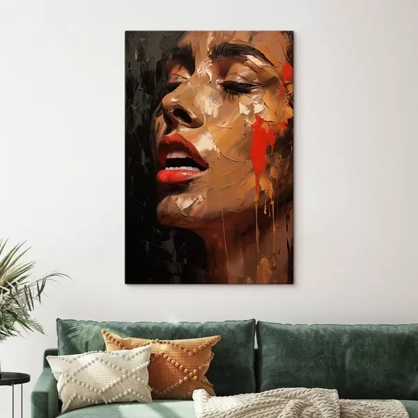 Glezna Sievietes portrets siltos triepienos un sarkanos toņos Nr s47294
