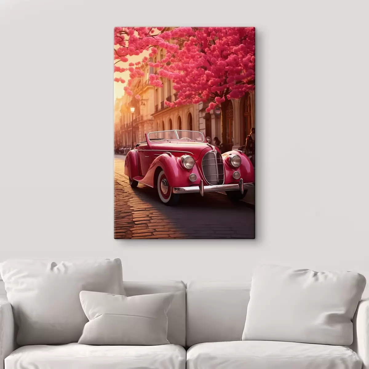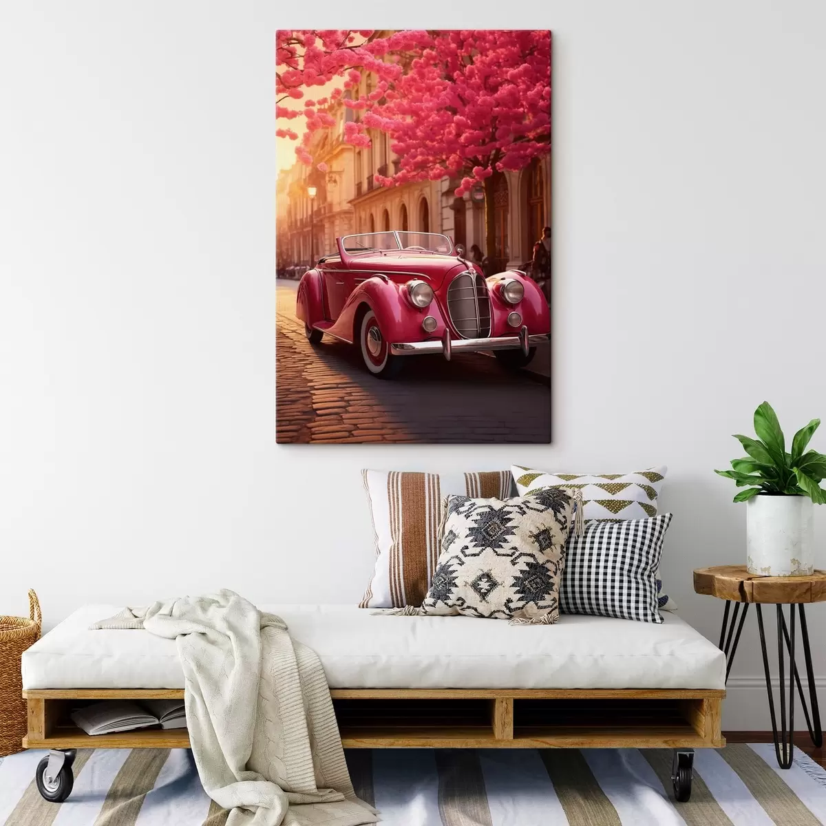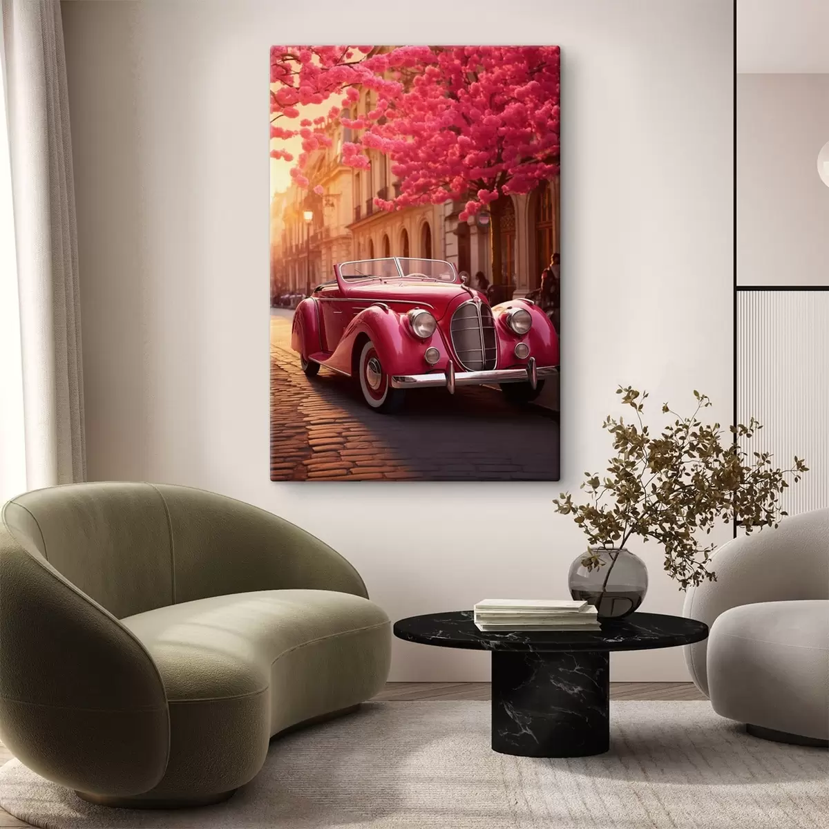 Glezna Rozā automašīna zem ziedošiem kokiem s47295