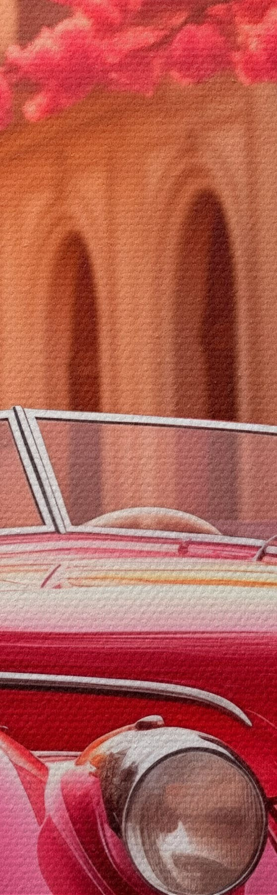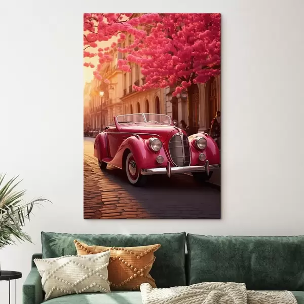 Glezna Rozā automašīna zem ziedošiem kokiem Nr s47295