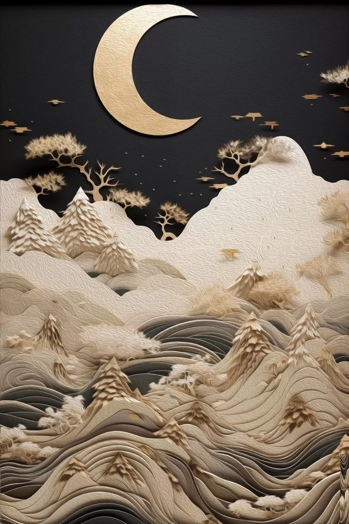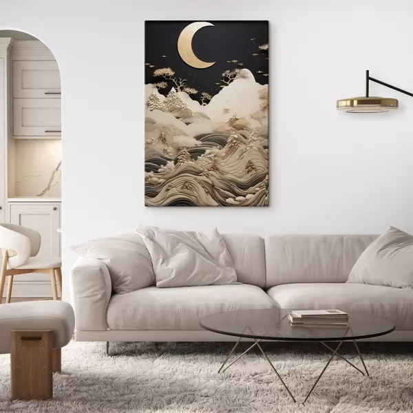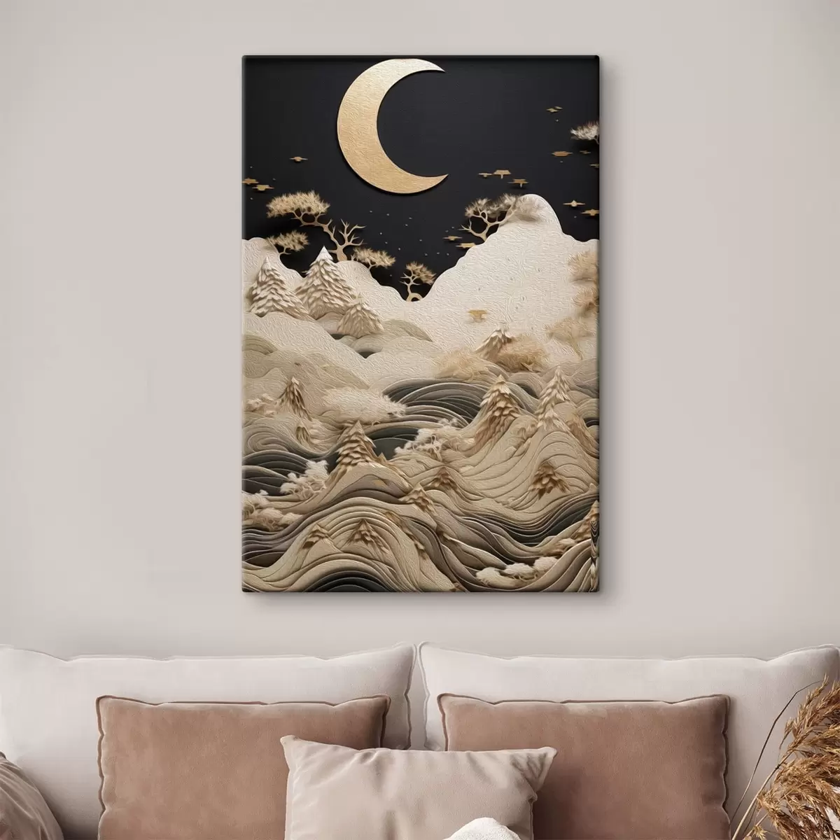 Glezna Stilizēti kalni un koki zem mēness Nr s47300