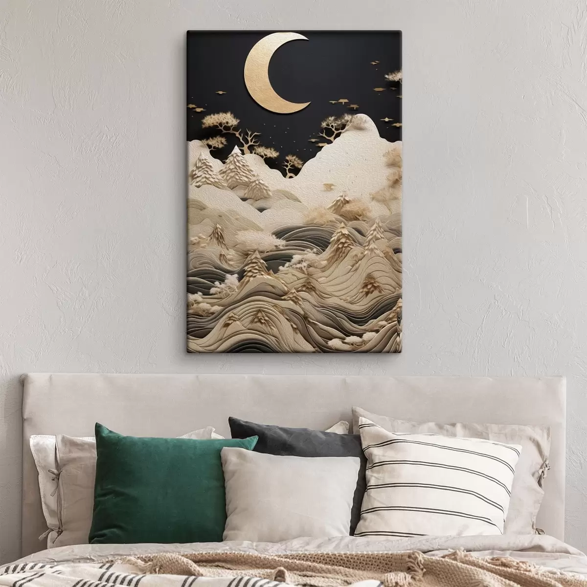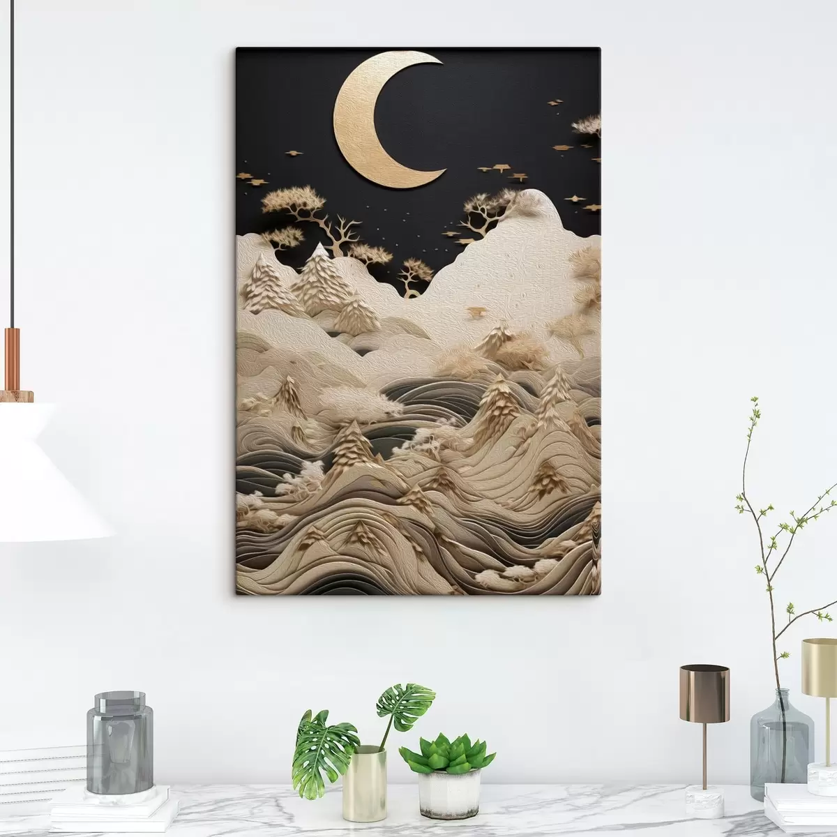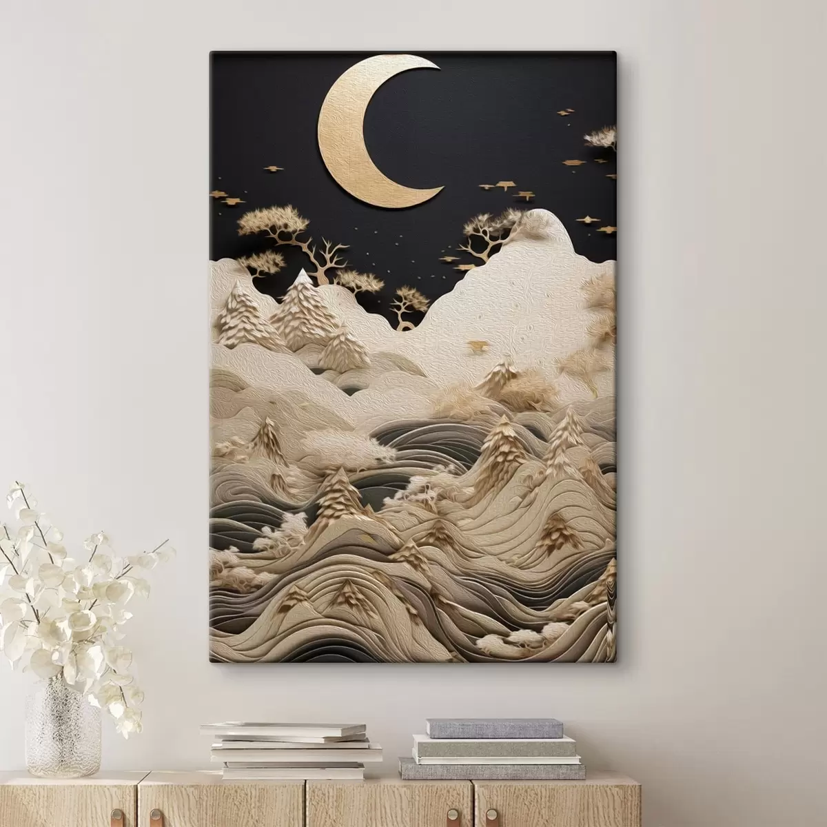 Glezna Stilizēti kalni un koki zem mēness Nr s47300