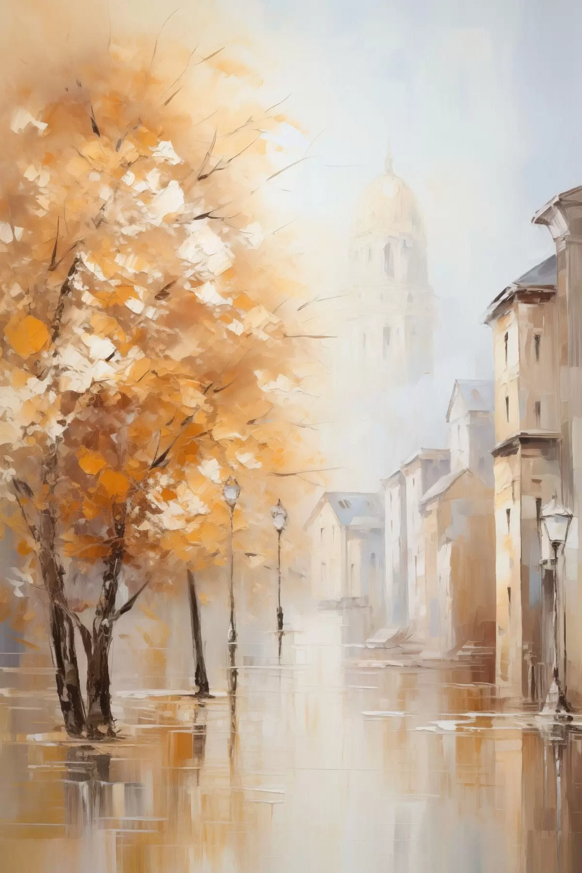 Glezna Iela ar kokiem un kupolu miglā Nr s47304