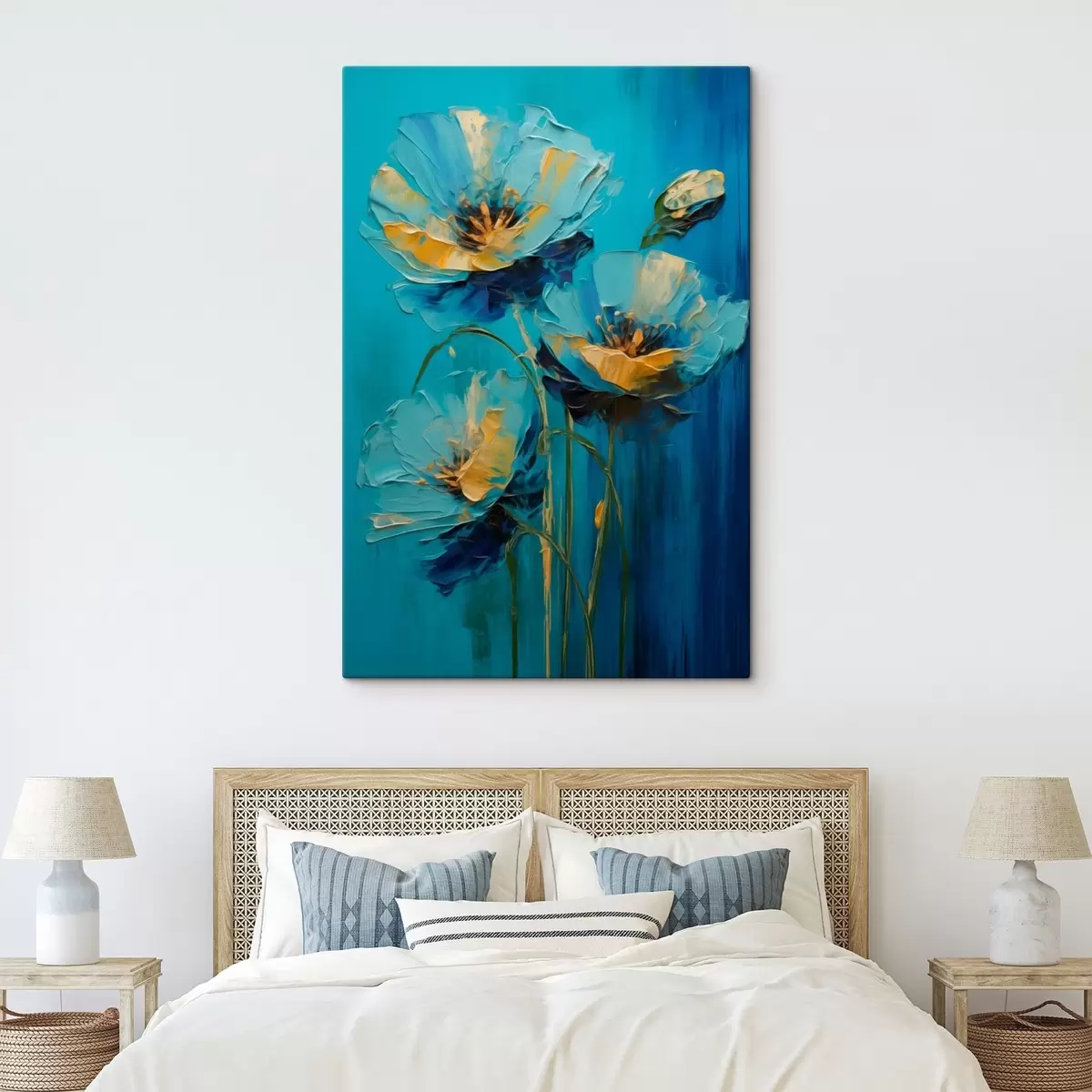 Glezna ir iekārtojama uzreiz pēc tās saņemšanas. Glezna tiks izstiepta uz 2 cm platām koka nestuvēm.