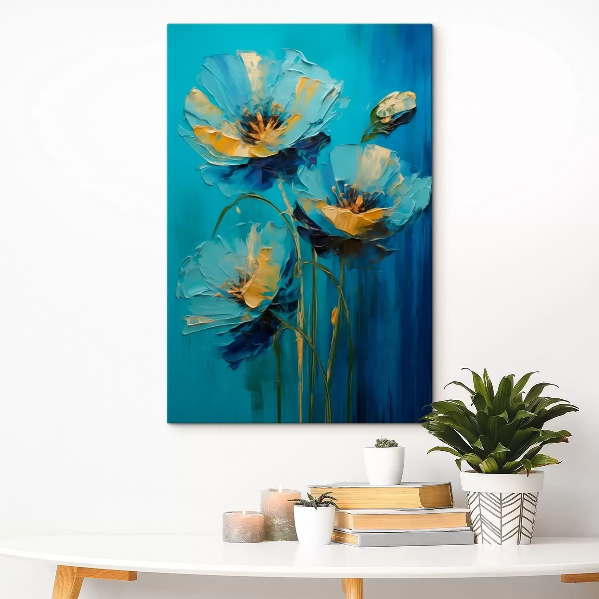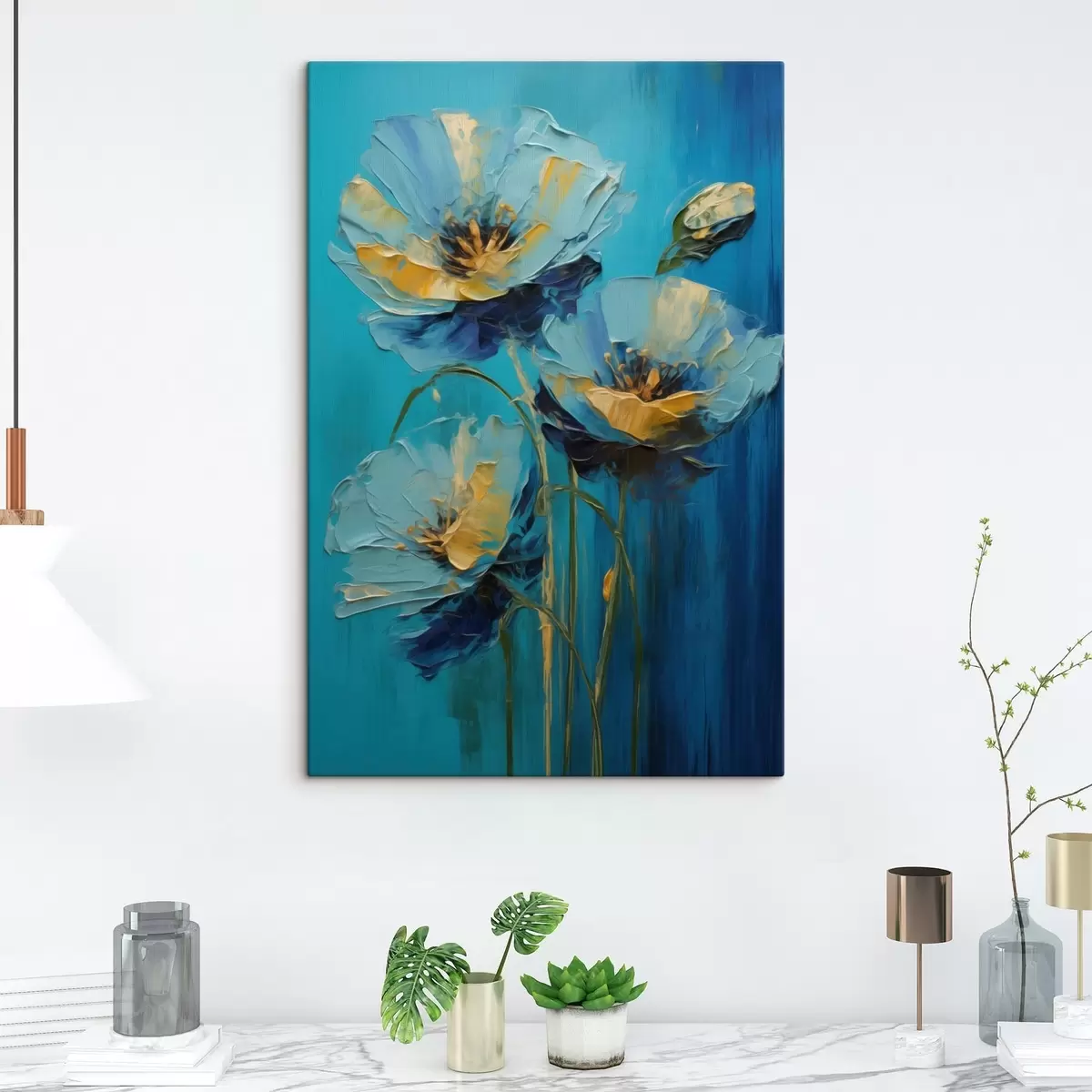 Glezna Zilas puķes uz spilgta fona Nr s47324