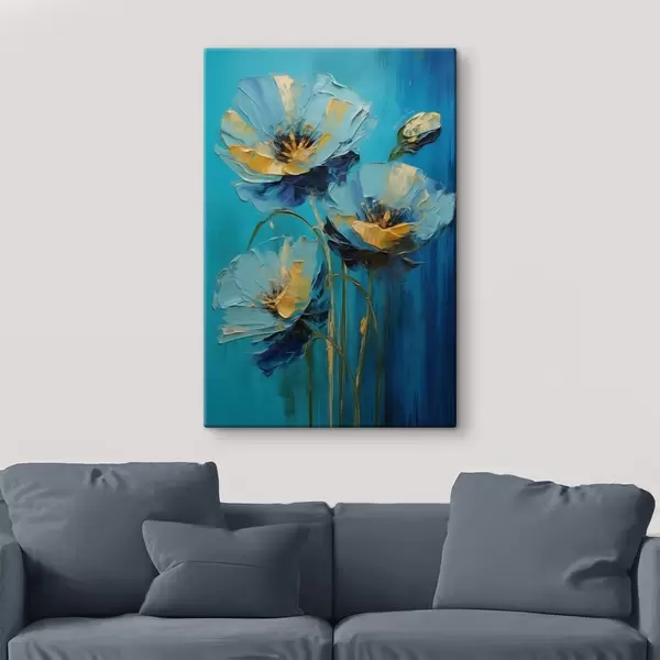 Glezna Zilas puķes uz spilgta fona Nr s47324
