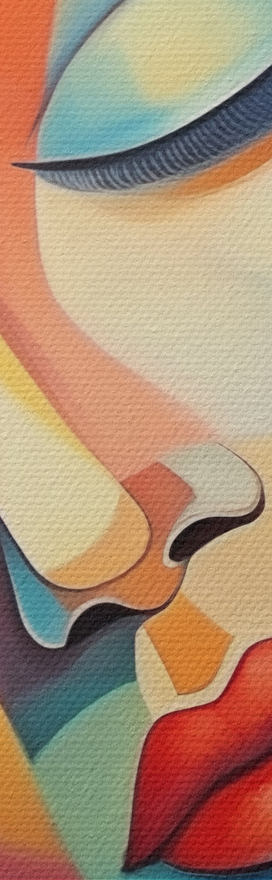 Smalkais diegu pinums uz šī audekla atgādina profesionālu mākslinieku audeklu virsmu.