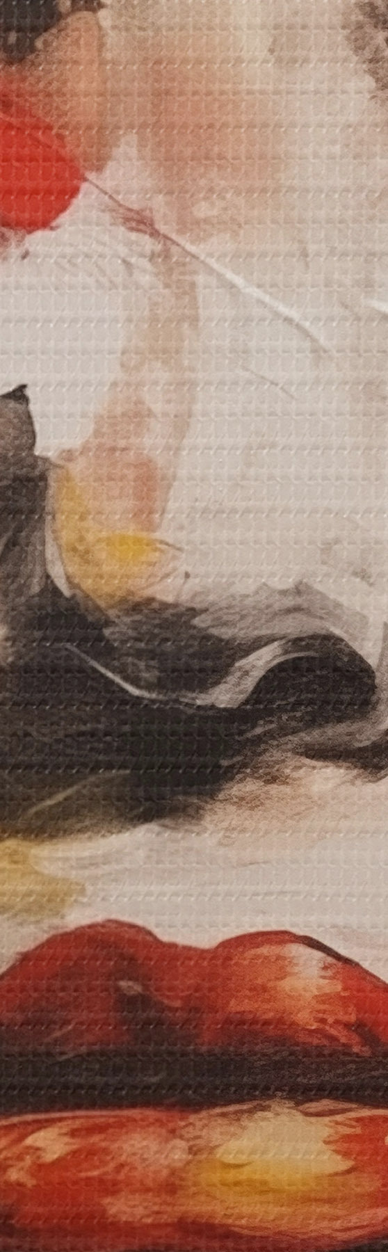Smalkais diegu pinums uz šī audekla atgādina profesionālu mākslinieku audeklu virsmu.