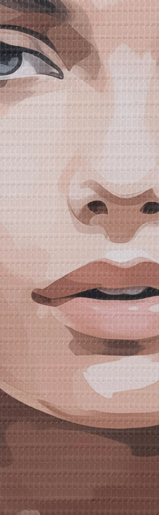 Smalkais diegu pinums uz šī audekla atgādina profesionālu mākslinieku audeklu virsmu.