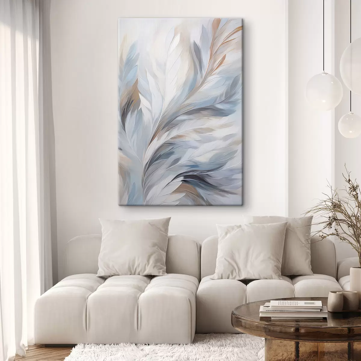 Glezna Delikātas gaiši zilas un brūnas spalvas ar maigu, ēterisku tekstūru uz balta fona s47416