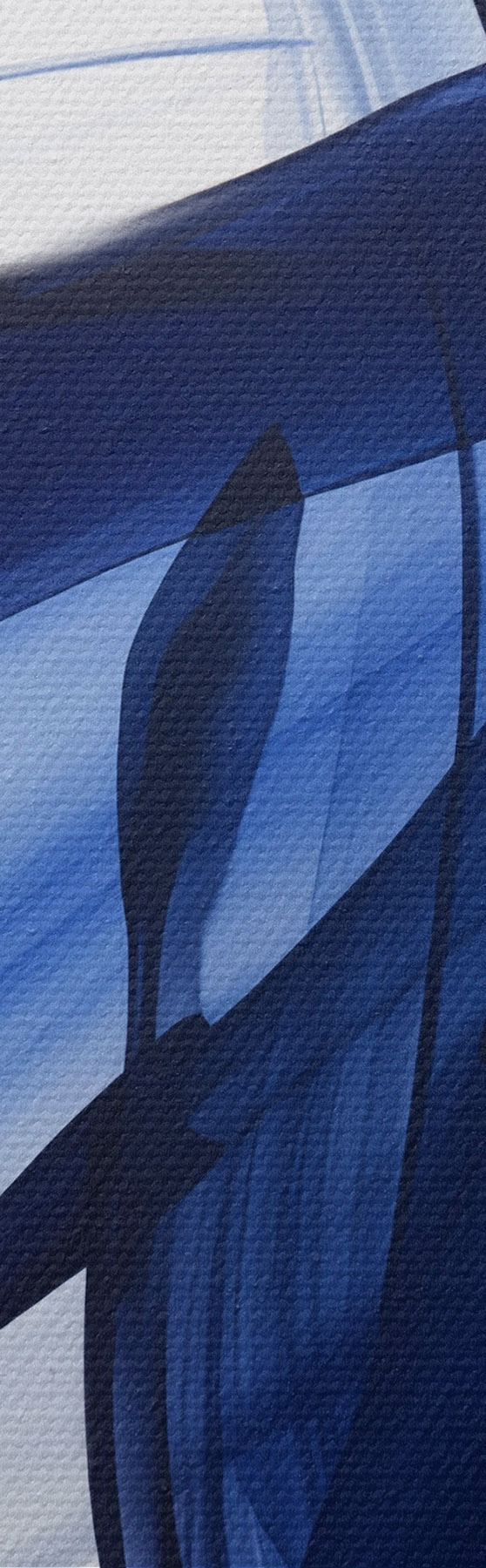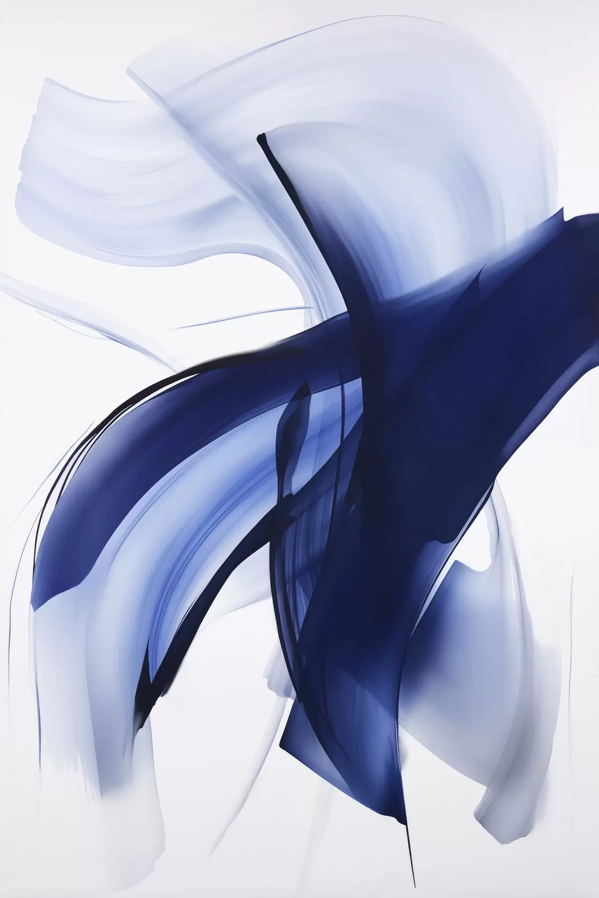 Glezna Abstraktas zilas, otu triepienu līdzīgas formas ar plūstošām līnijām un izliekumiem uz balta fona, modernā māksla s47429