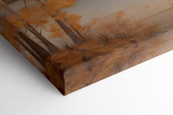 Glezna Rudens teksturēti koki ar oranžām lapām ierāmē mierīgu ezeru ar tālumā redzamām kalnām zem apmākušām debesīm. Nr s47441