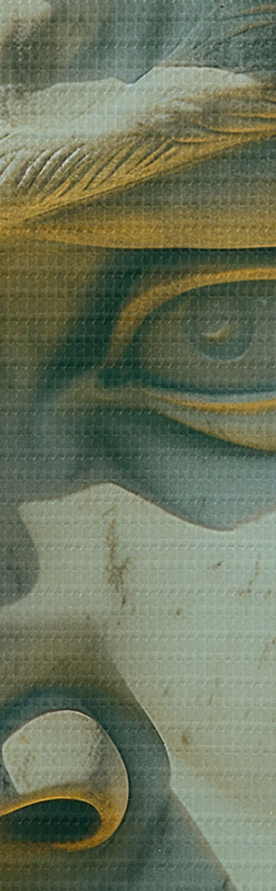 Smalkais diegu pinums uz šī audekla atgādina profesionālu mākslinieku audeklu virsmu.
