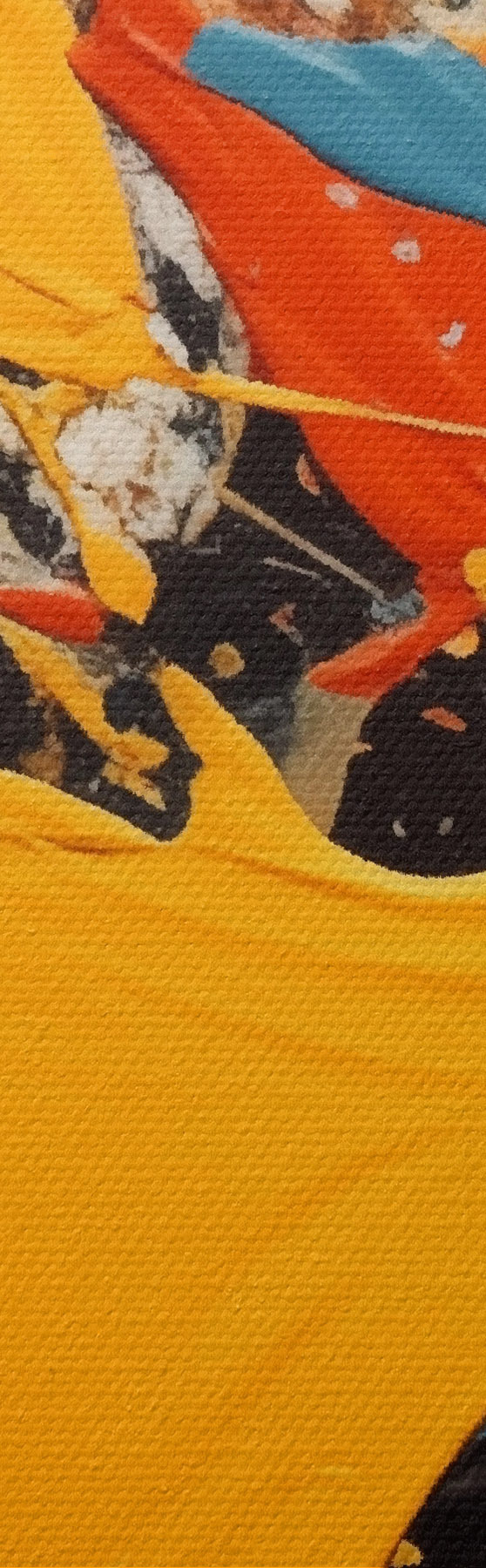 Smalkais diegu pinums uz šī audekla atgādina profesionālu mākslinieku audeklu virsmu.
