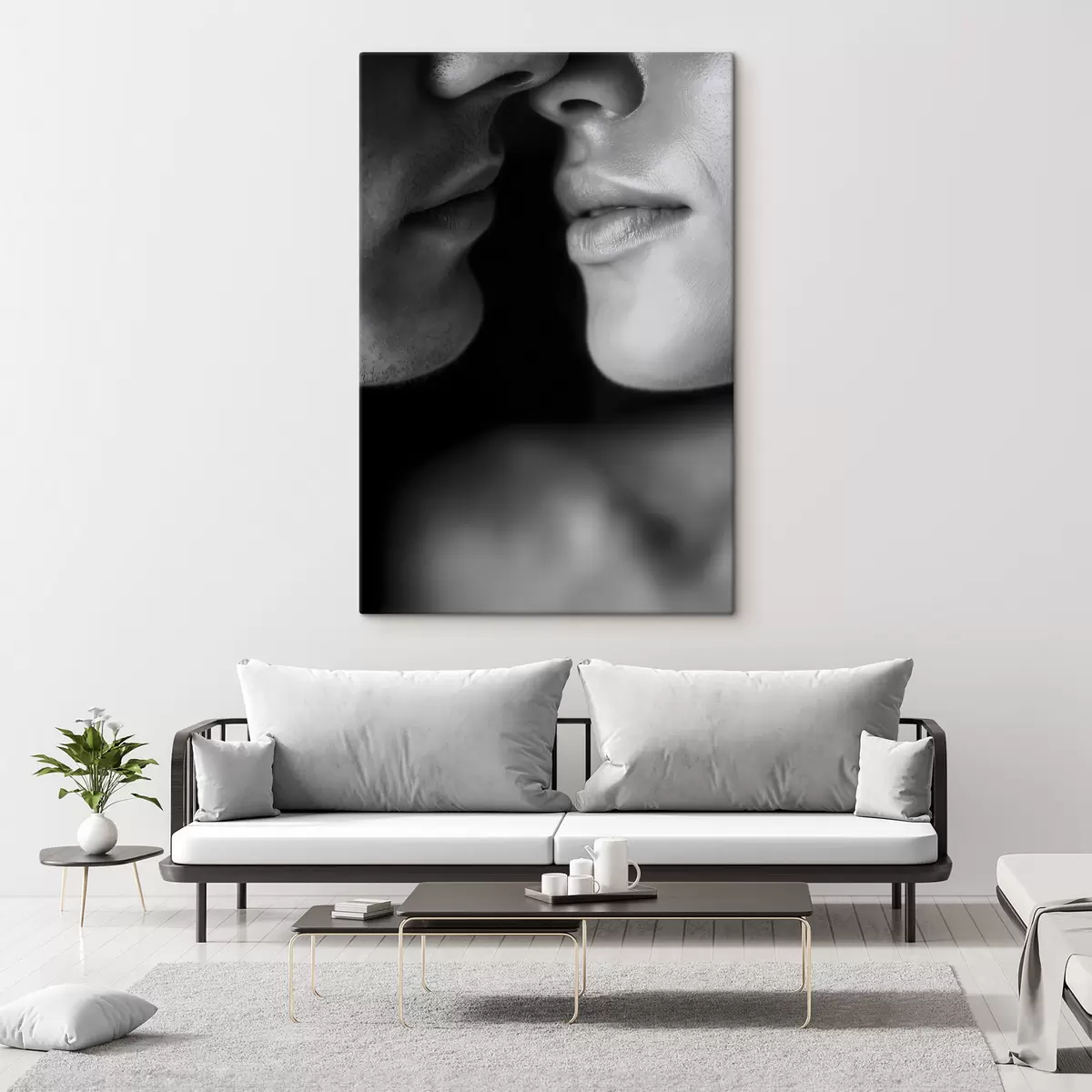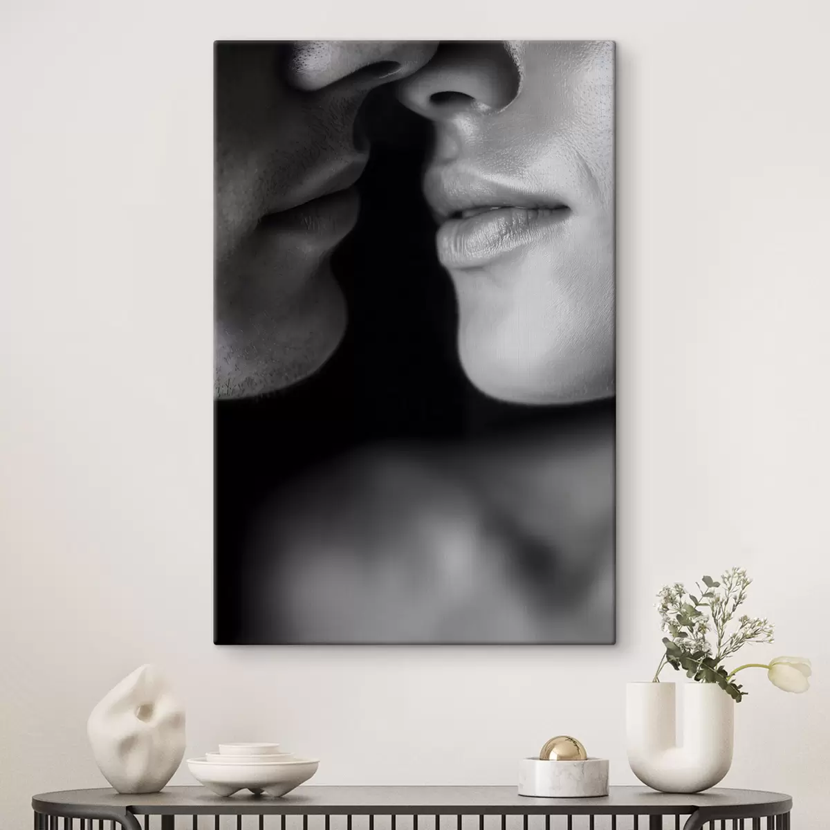 Glezna vīrieša un sievietes melnbalti lūpas Nr s47687