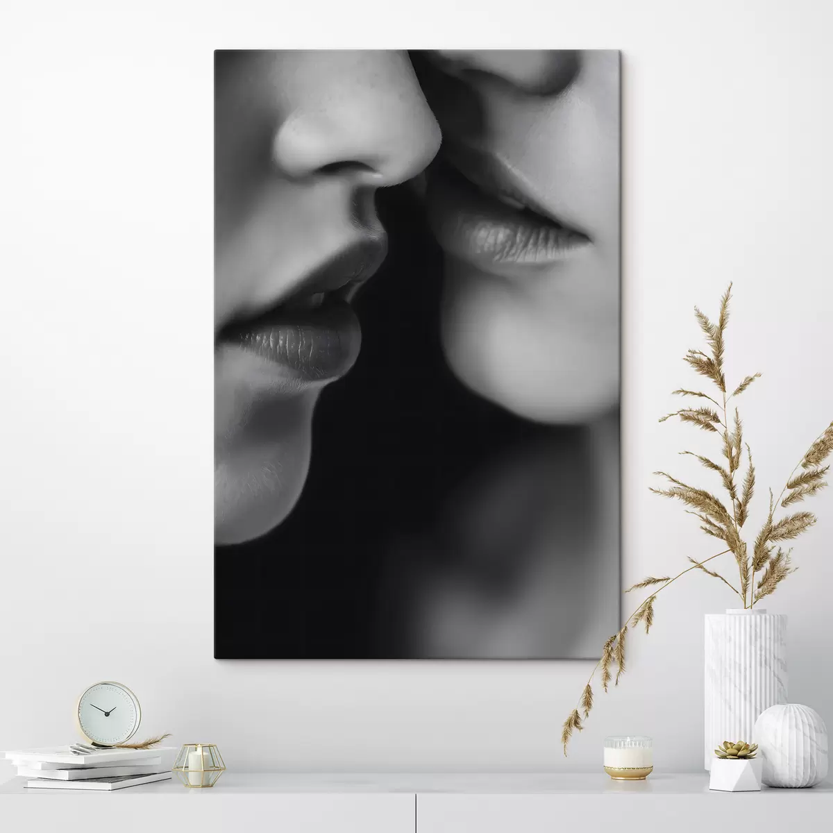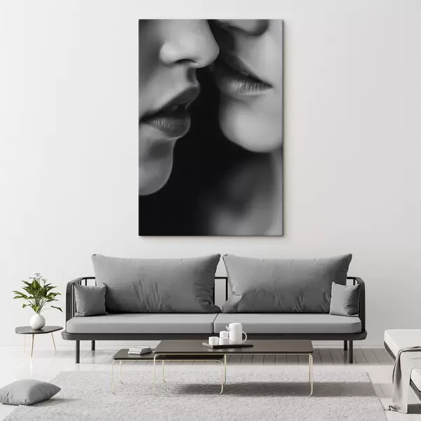 Glezna divu sieviešu melnās un baltās lūpas Nr s47688
