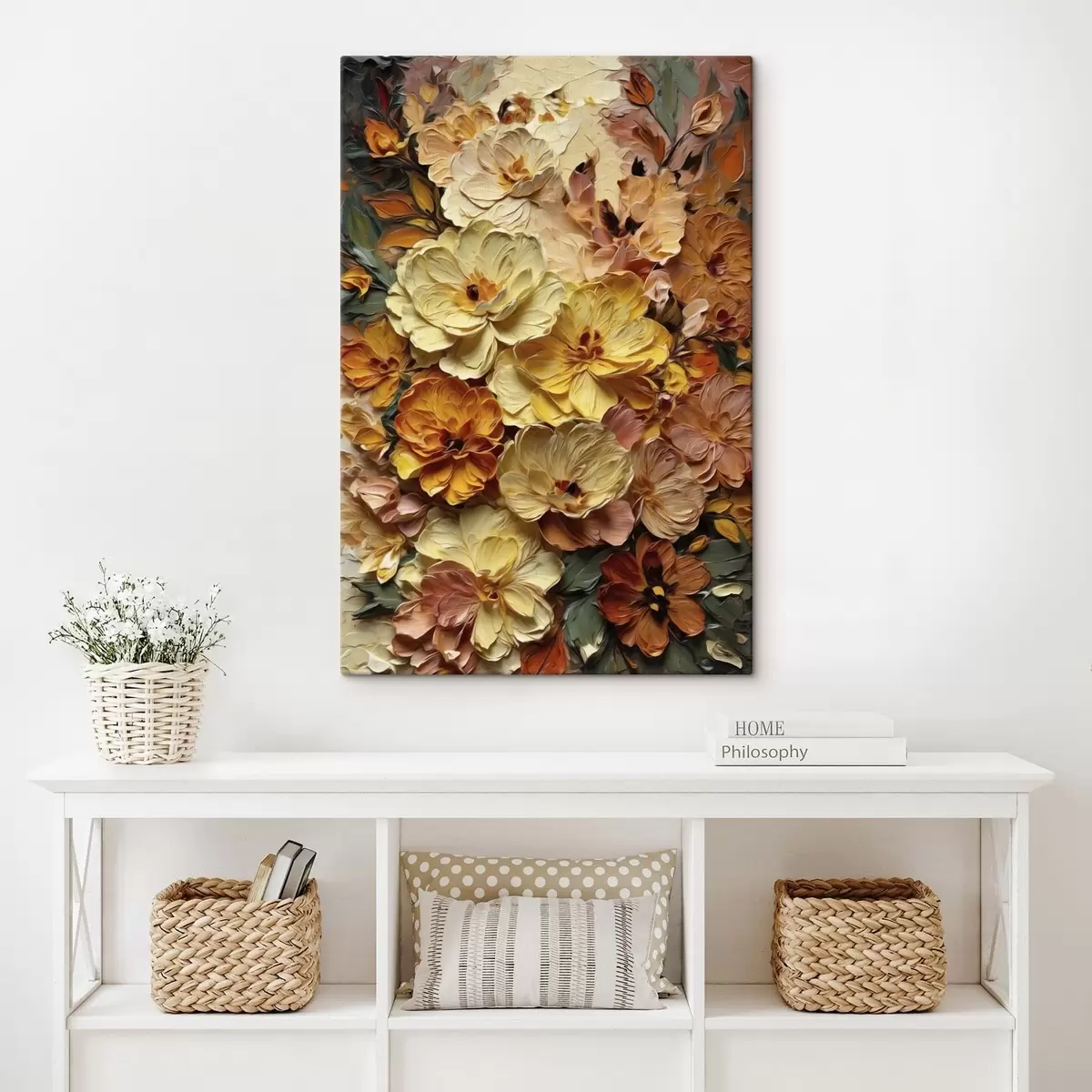 Glezna Krāšņs sastāvs no košām ziediem siltos toņos s47760