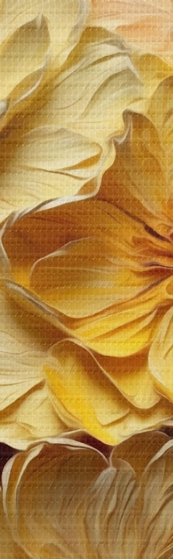 Smalkais diegu pinums uz šī audekla atgādina profesionālu mākslinieku audeklu virsmu.