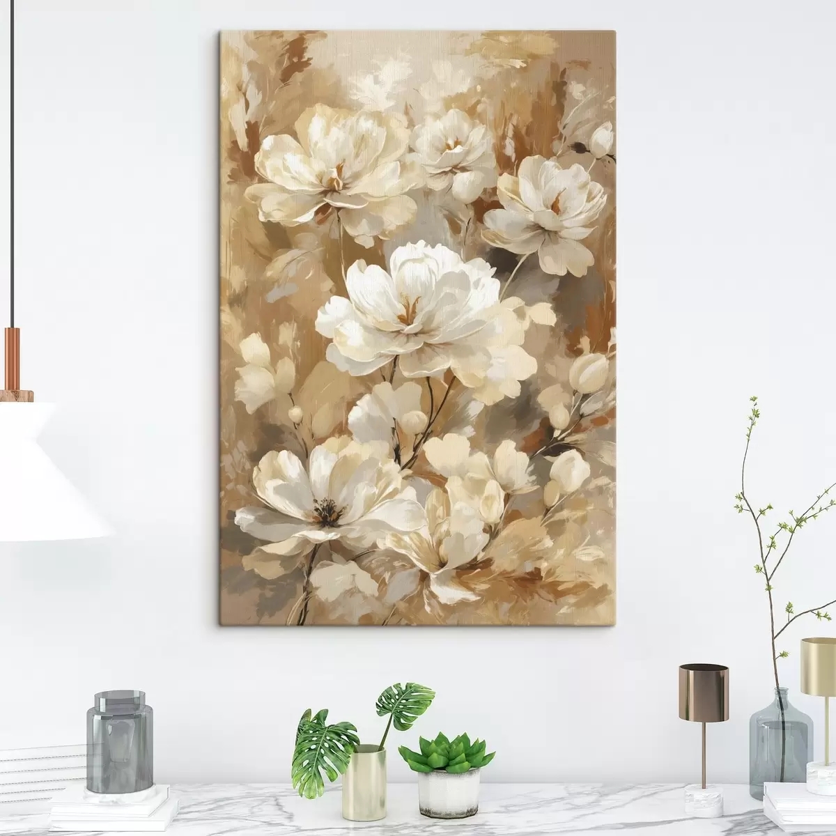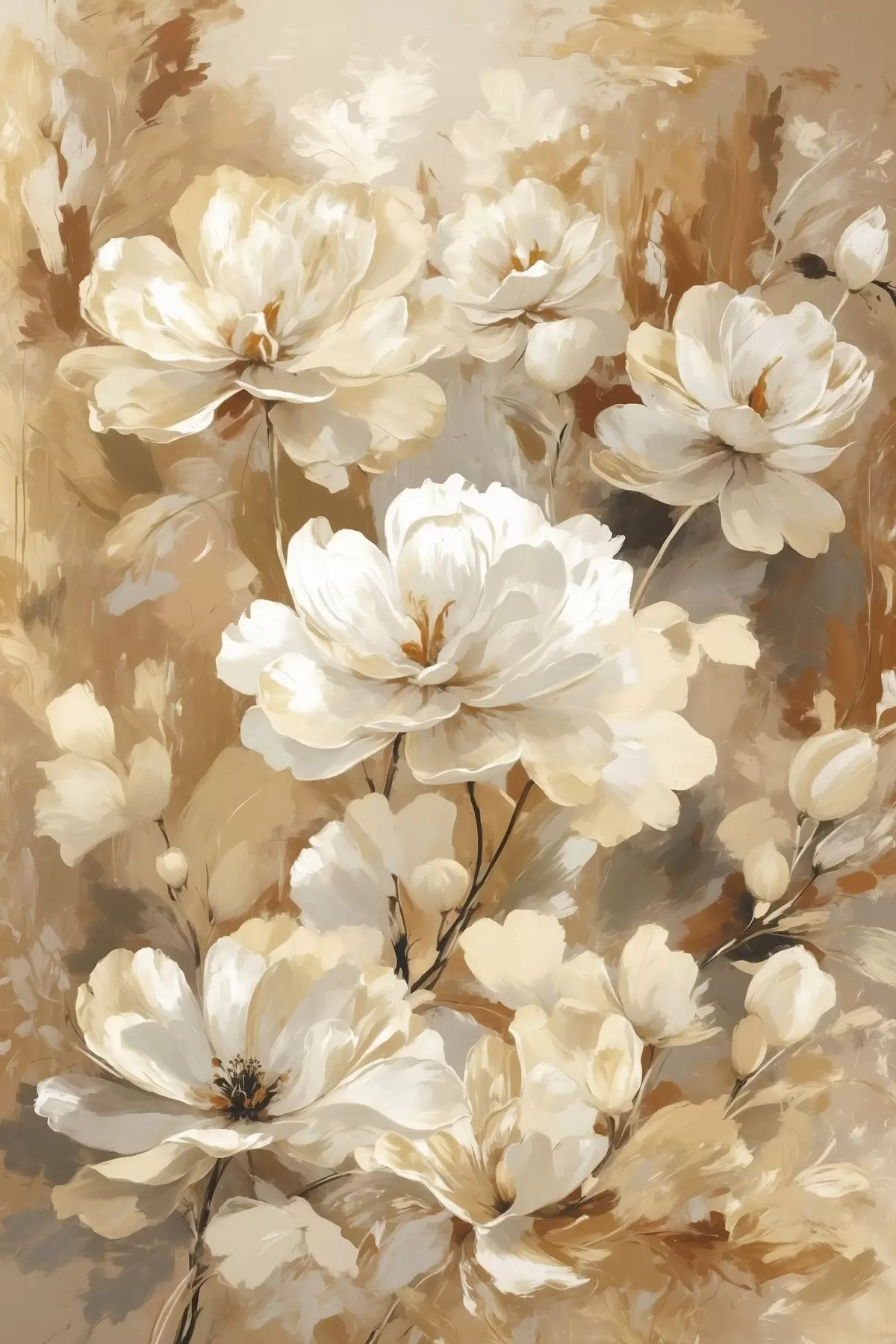 Glezna Lieli gaiši ziedi, uzgleznoti ar platām otām s47761