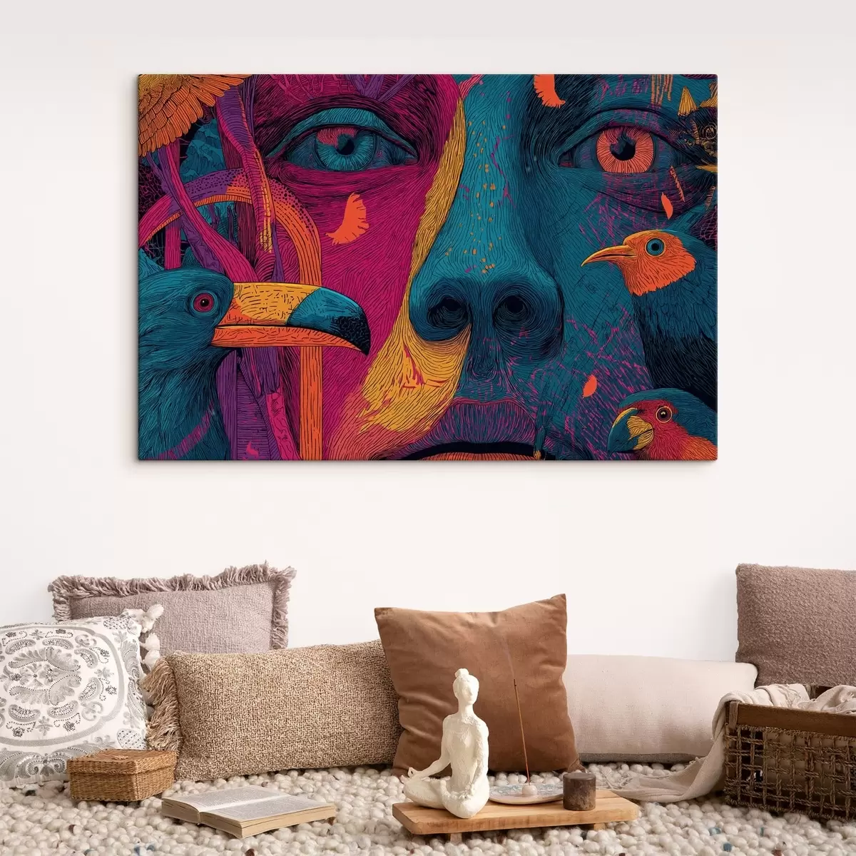 Glezna Psihodēlisks portrets ar putniem Nr s47789