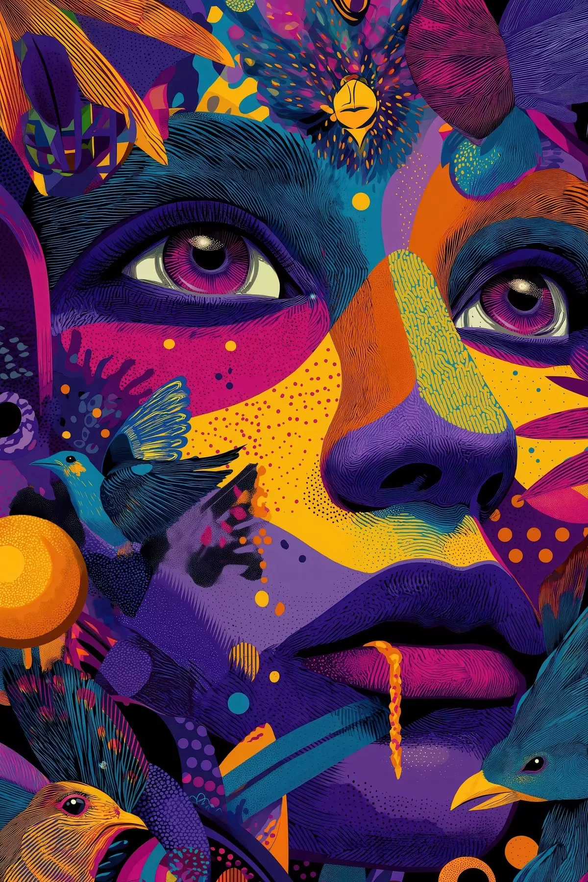 Glezna Psihodēlisks portrets ar putniem Nr s47790