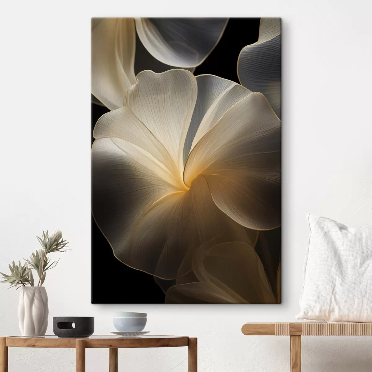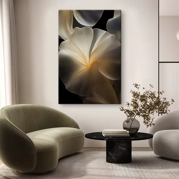 Glezna Abstrakti plūstoši caurspīdīgi ziedlapiņas ar smalkām līnijām uz tumša fona s47860