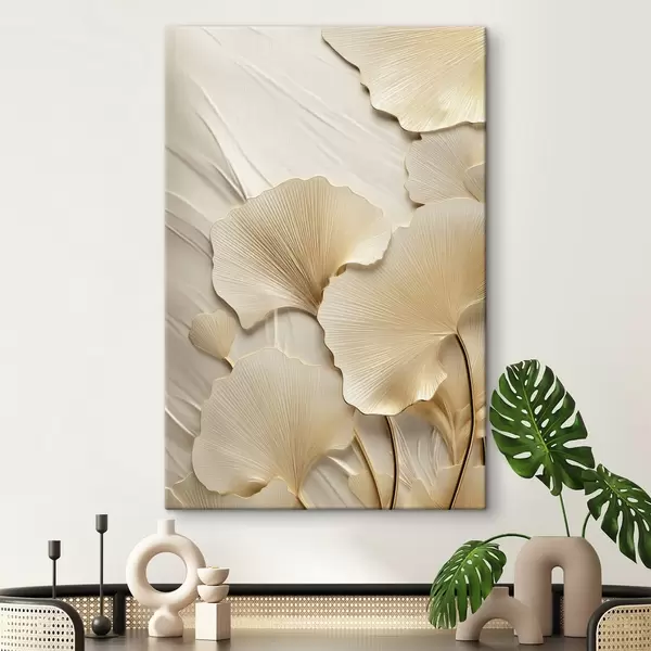 Glezna Ginkgo abstraktas lapas uz teksturēta, gaiša fona, eleganta un abstraktā kompozīcija Nr s47867