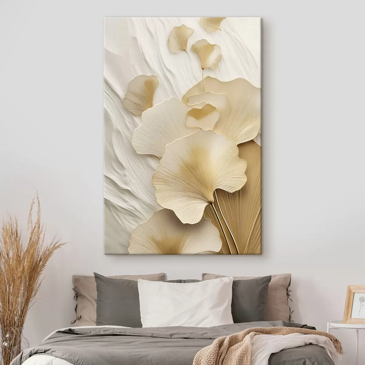 Glezna Ginkgo abstraktas lapas uz teksturēta, gaiša fona, eleganta un abstraktā kompozīcija Nr s47868
