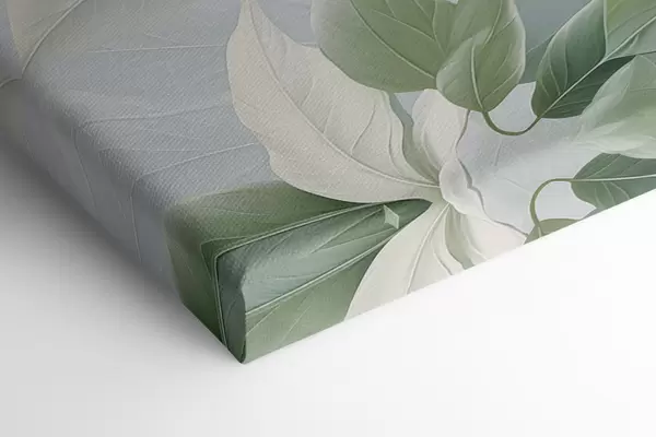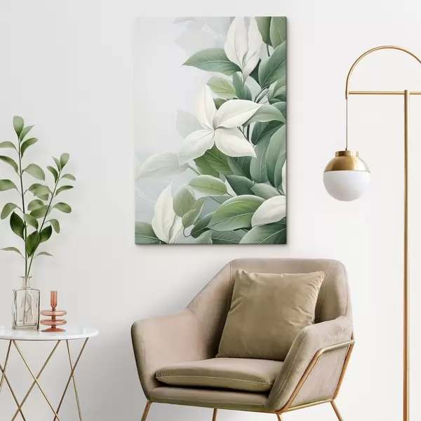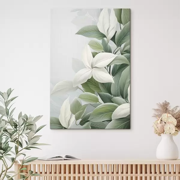 Glezna Baltas puķes ar zaļām lapām, pasteļtoņos fons Nr s47870