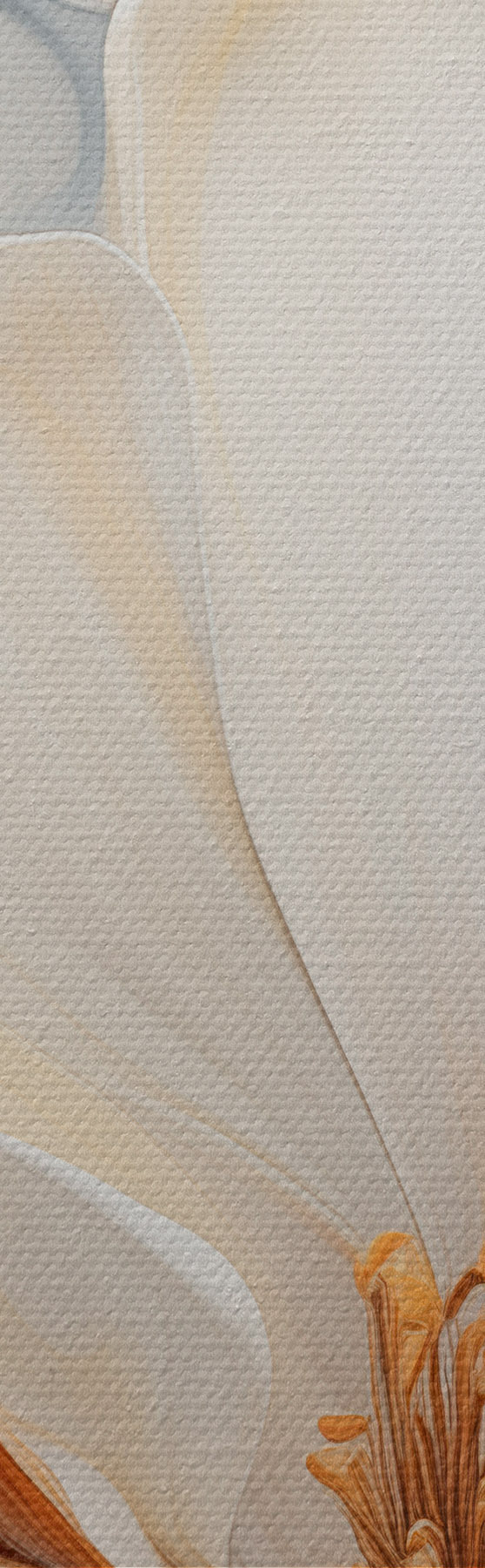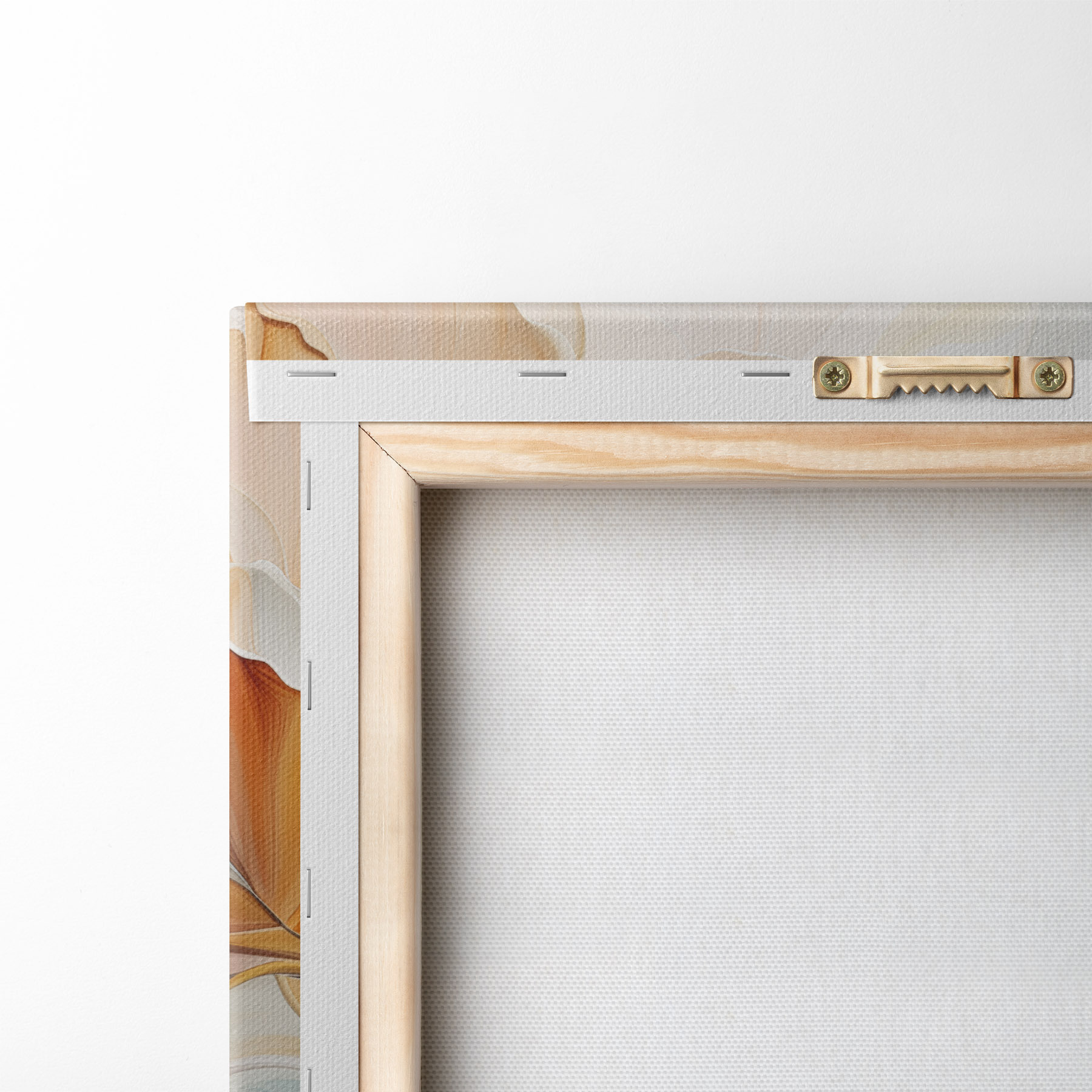 Glezna Abstrakts liels zieds ar baltiem, oranžiem un zaļgani zilganiem ziedlapiem, faktūru fonu Nr s47878