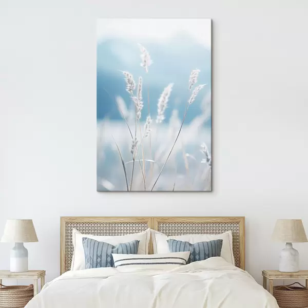 Glezna Baltas, pūkainas zāles pret maigu zilu debesi, ar nelielu lauka dziļumu Nr s47880