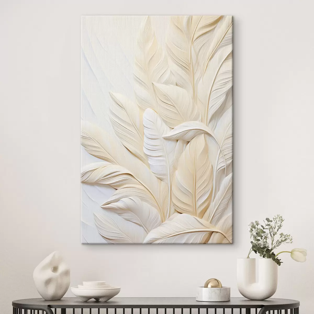Glezna Krēmkrāsas spalvas, kas pārklājas viena ar otru, ar maigu, gaišu fonu Nr s47883