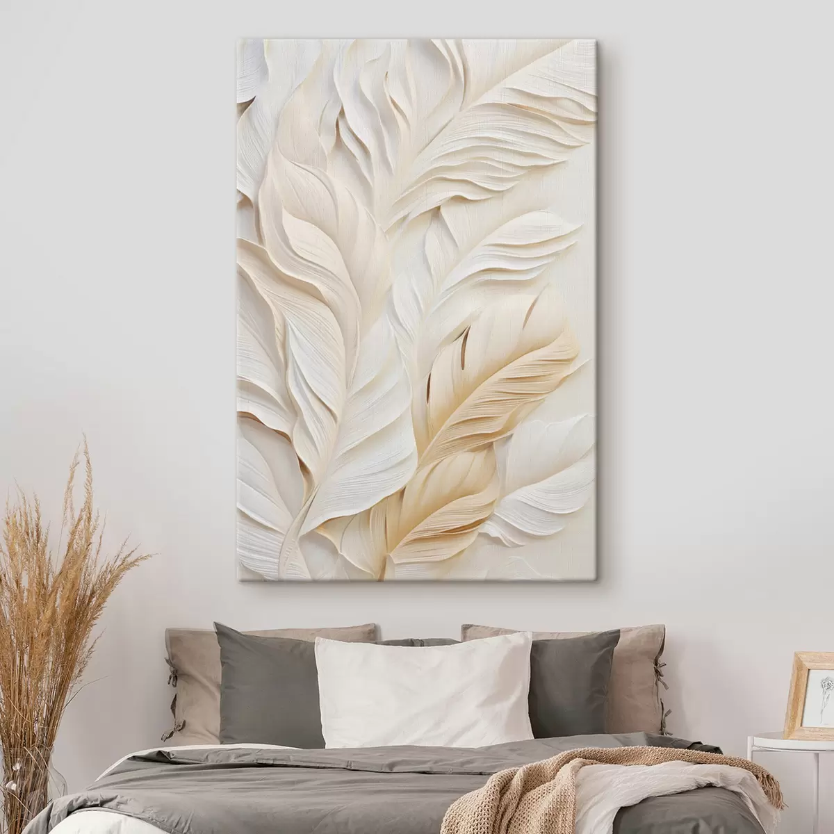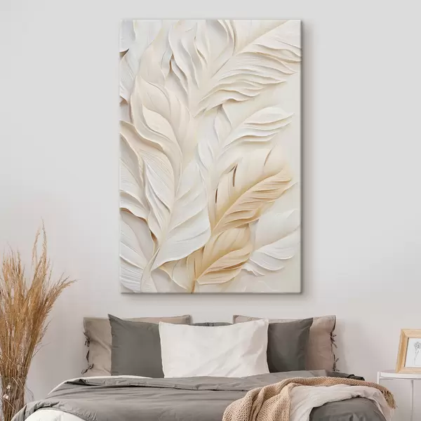 Glezna Krēmkrāsas spalvas, kas pārklājas viena ar otru, ar maigu, gaišu fonu Nr s47884