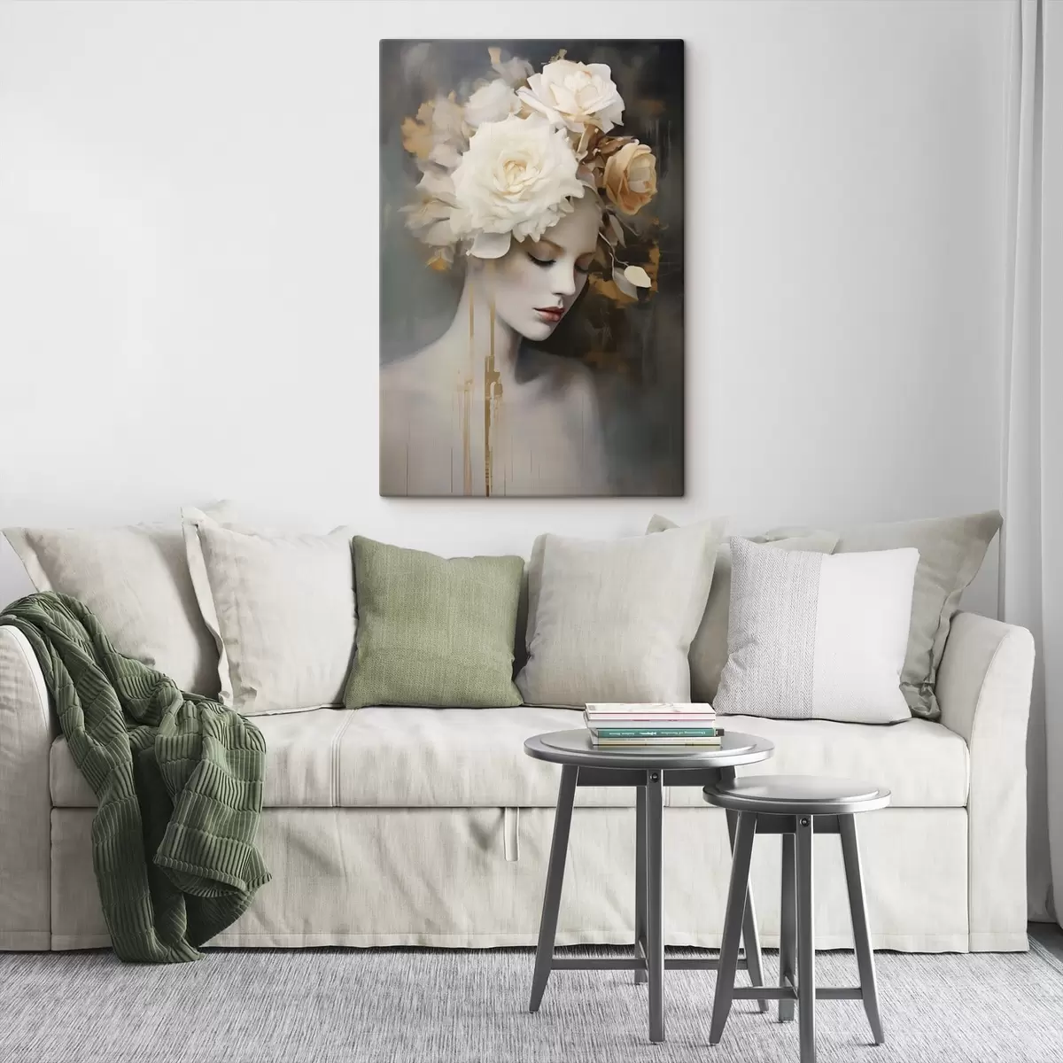 Glezna Sievietes portrets ar baltiem ziediem Nr s47904