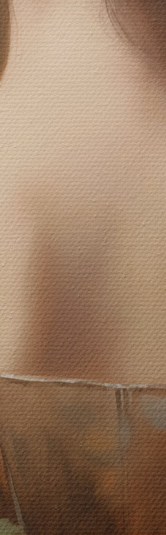 Smalkais diegu pinums uz šī audekla atgādina profesionālu mākslinieku audeklu virsmu.