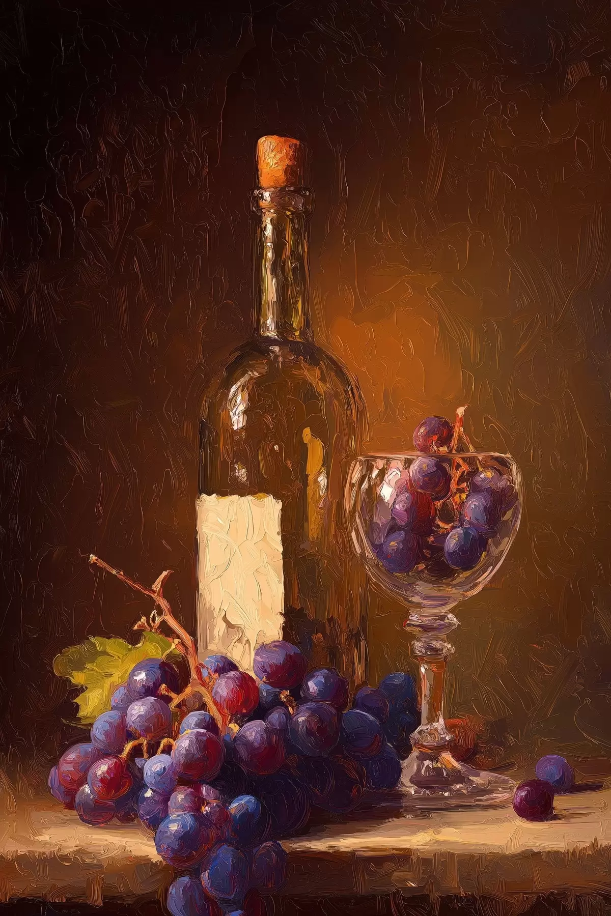 Glezna Klusā daba ar vīnu un vīnogām s47922
