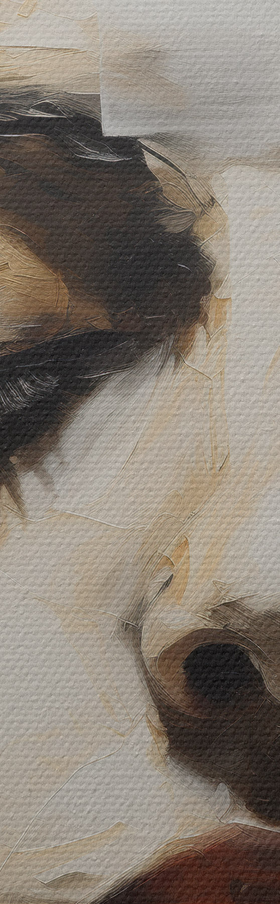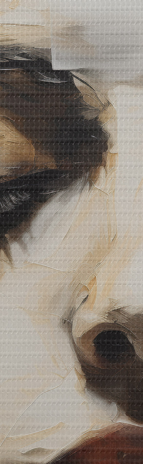Smalkais diegu pinums uz šī audekla atgādina profesionālu mākslinieku audeklu virsmu.
