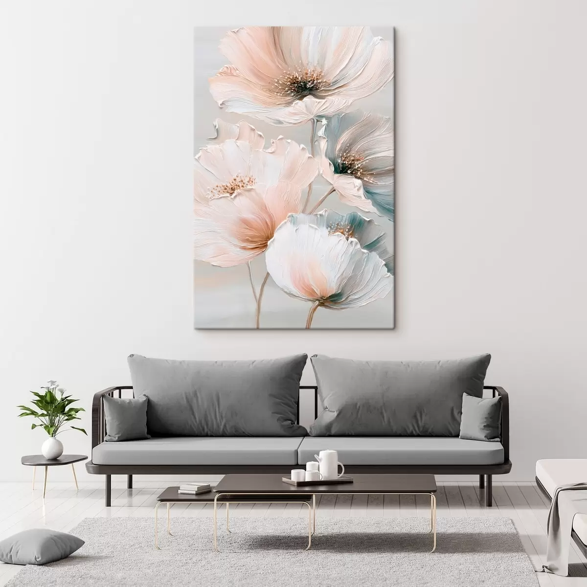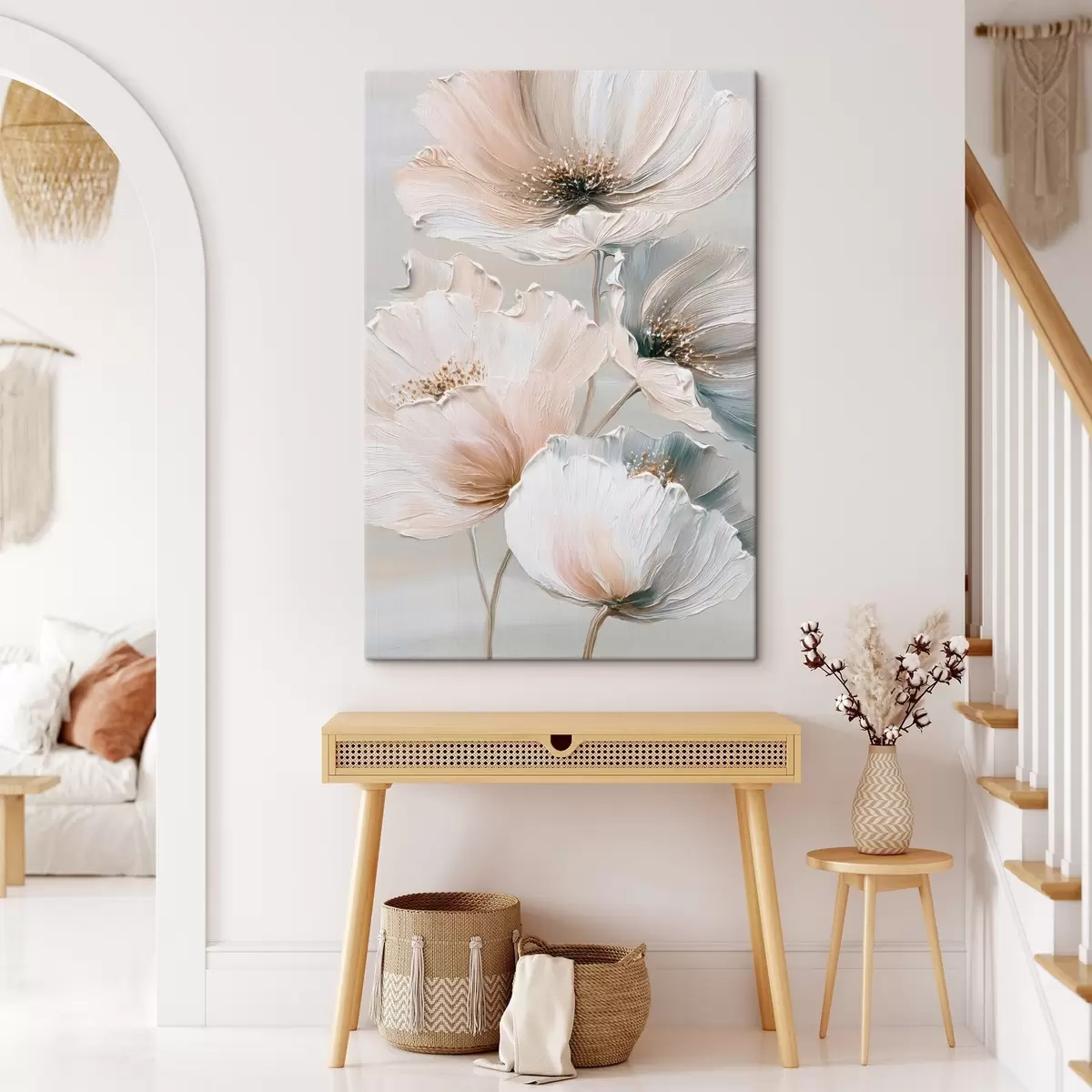 Glezna Ziedu kompozīcija ar faktūru otām smilškrāsas un rozā toņos s47961