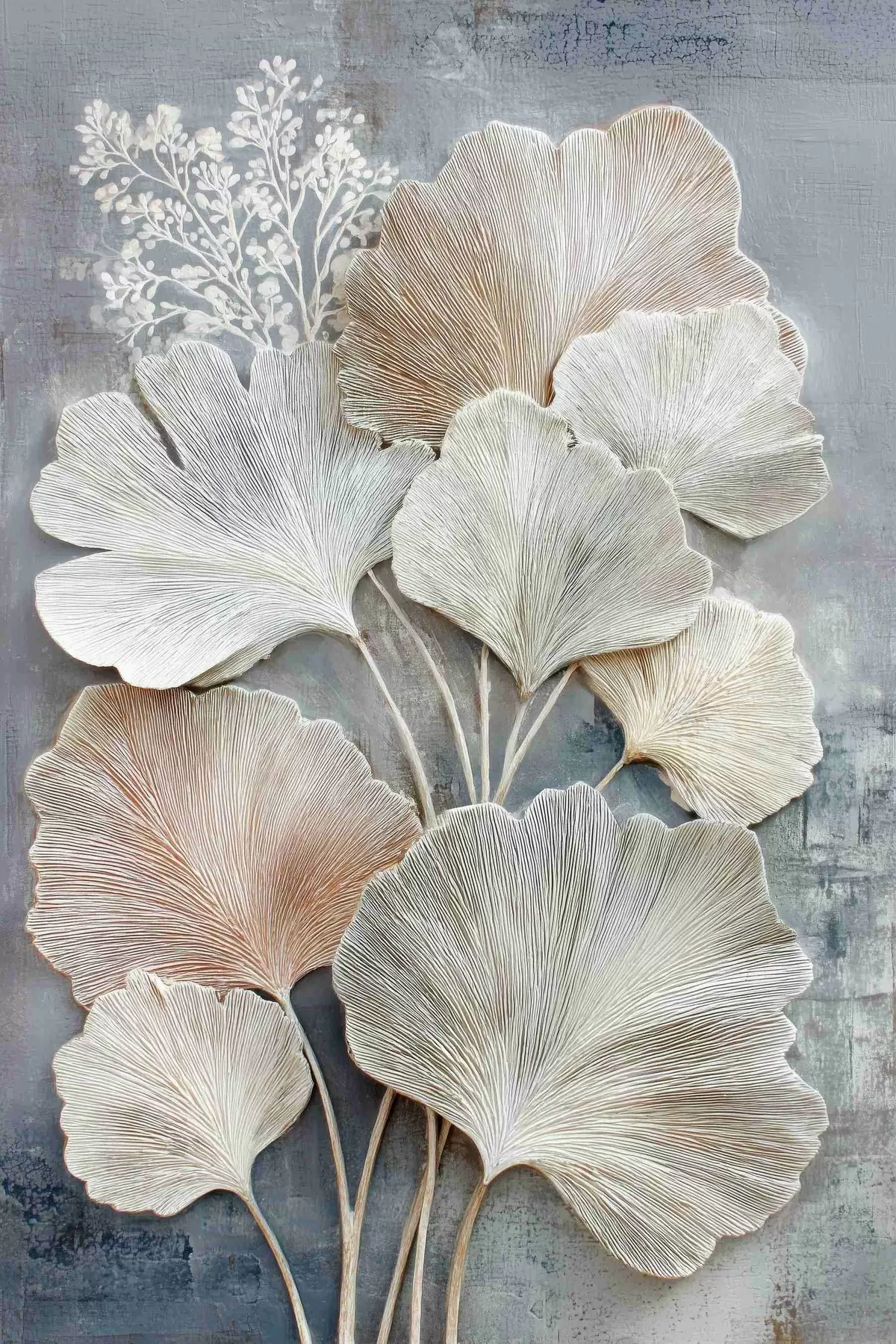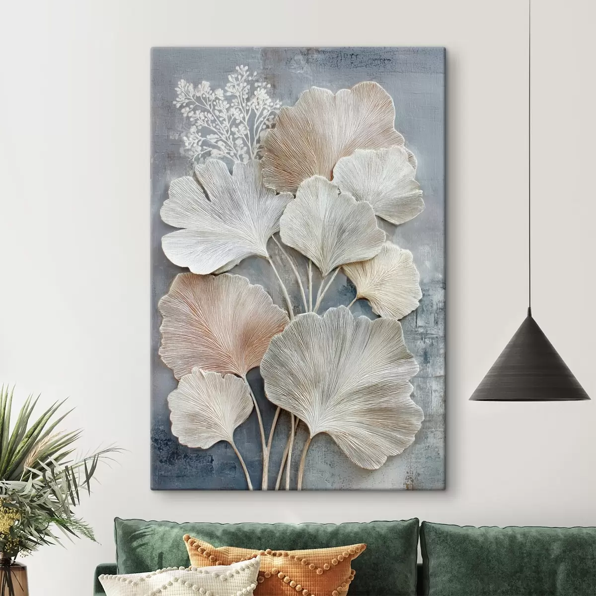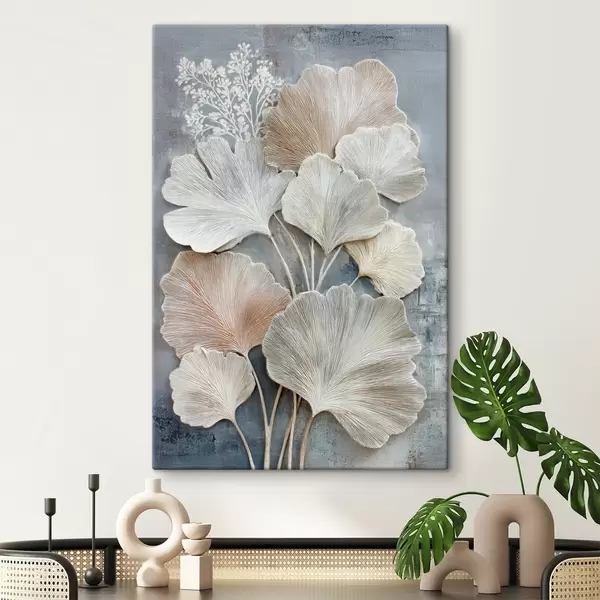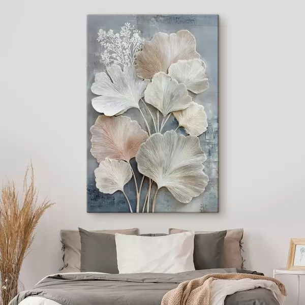 Glezna Abstrakta ziedu kompozīcija smilškrāsas un zilas krāsas toņos Nr s47963