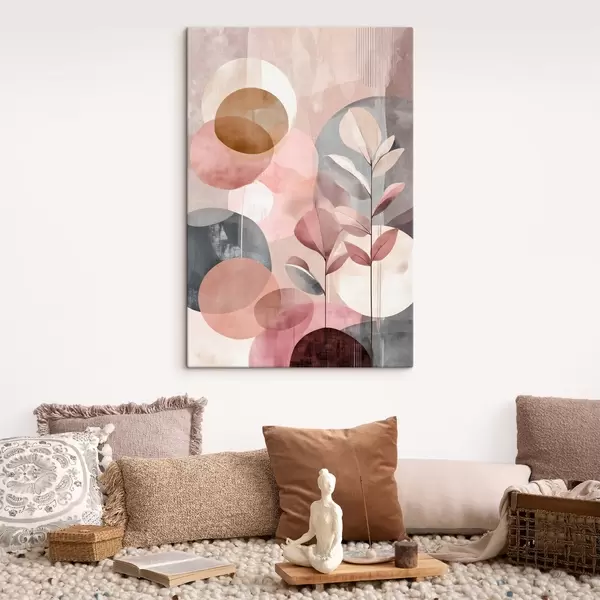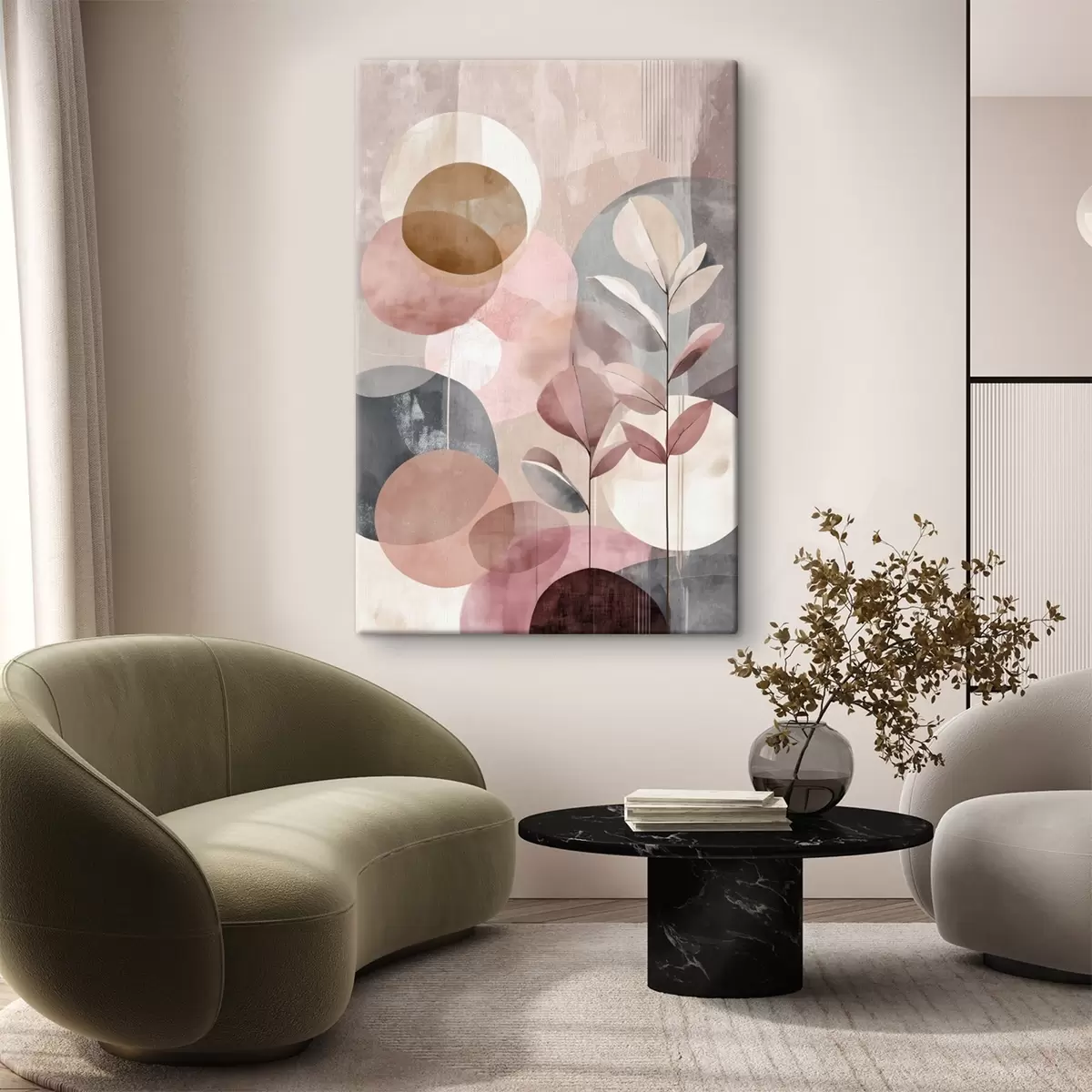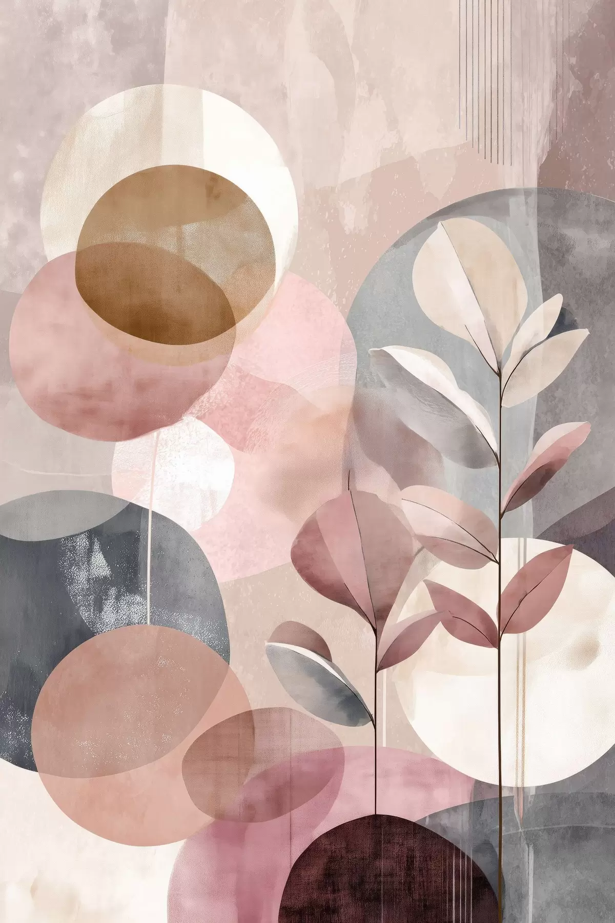 Glezna Abstrakta kompozīcija ar apļiem terakotas rozā toņu gamā s47977
