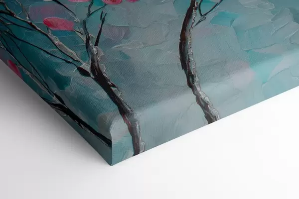 Glezna Ziedu zariņš ar rozā ziediem uz zila fona eļļas gleznas stilā Nr s47987