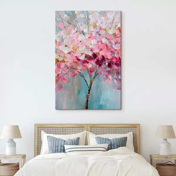 Glezna Maigi rozā ziedi pret skaidru debesi Nr s47988
