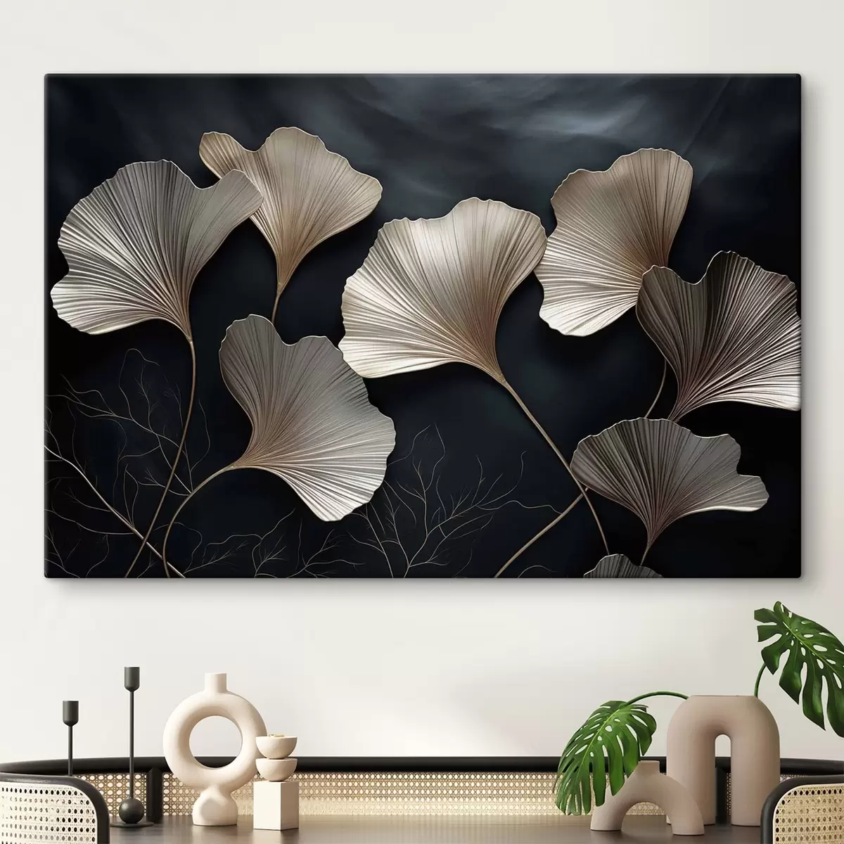 Glezna Ginkgo lapas uz tumša fona Nr s48008