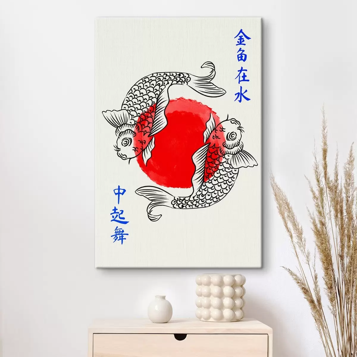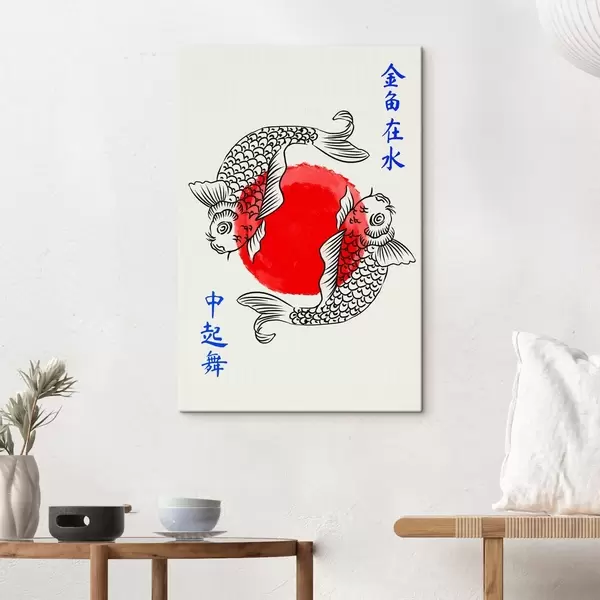 Glezna Divas dekoratīvas zivis ap sarkanu apli s48033