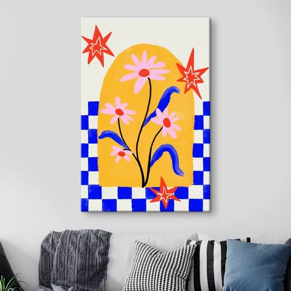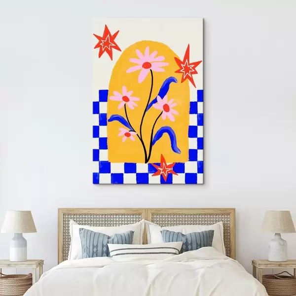 Glezna Spilgti ziedi uz dzeltena fona ar zilu rakstu Nr s48034