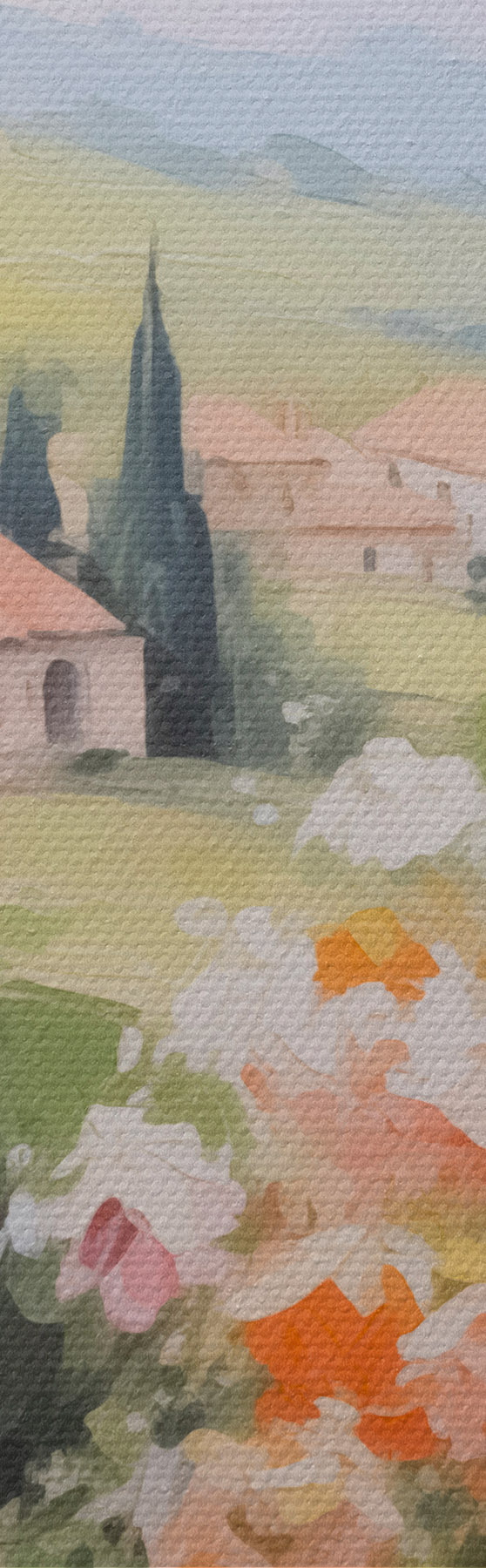 Glezna ir iekārtojama uzreiz pēc tās saņemšanas. Glezna tiks izstiepta uz 2 cm platām koka nestuvēm.