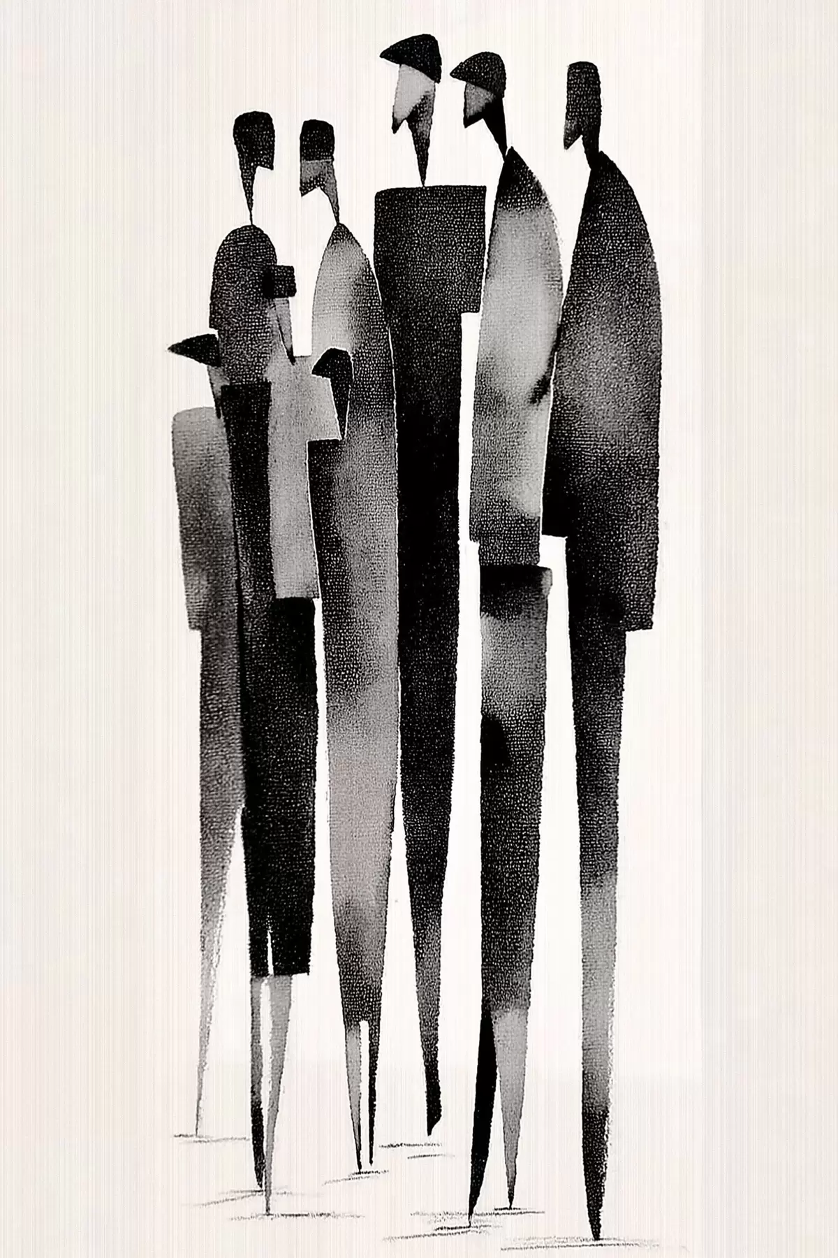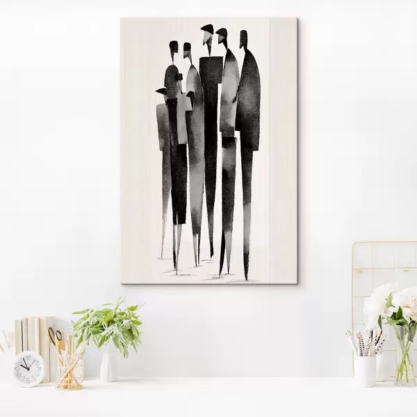 Glezna minimalistiskas, garenas cilvēku figūras, kas stāv rindā s48068