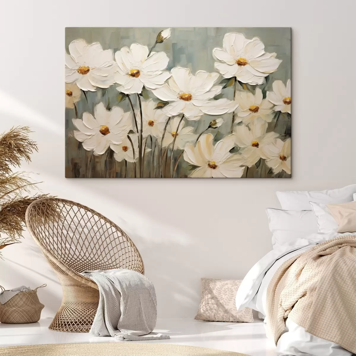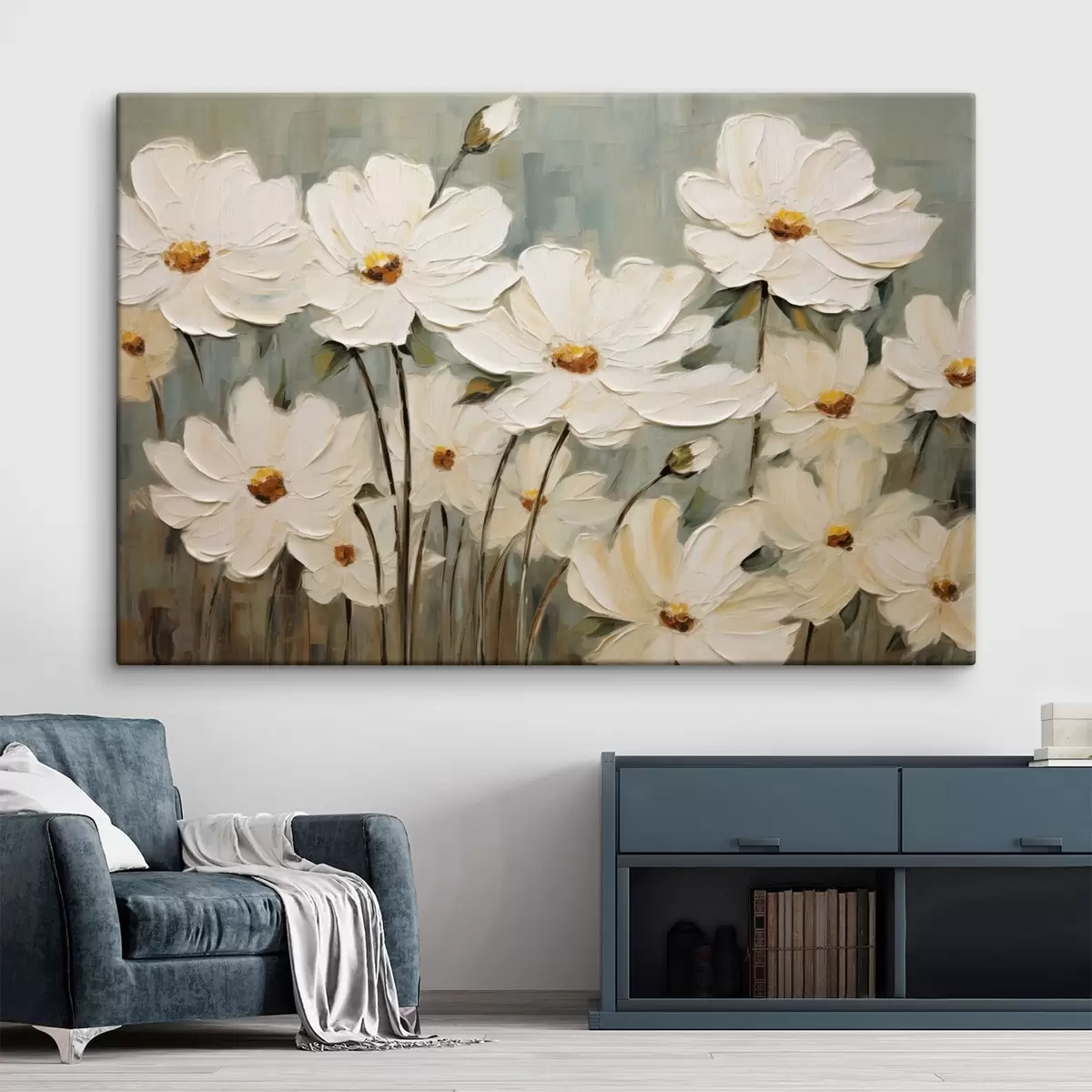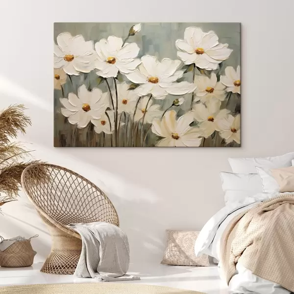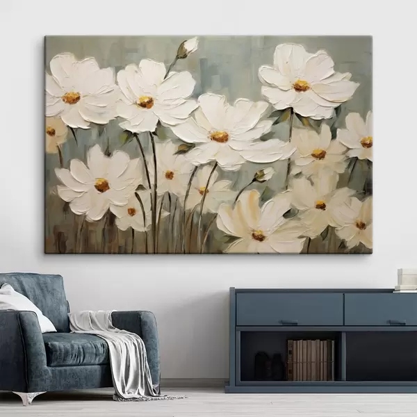 Glezna Baltas puķes uz faktūru fona, otu triepieni Nr s48094