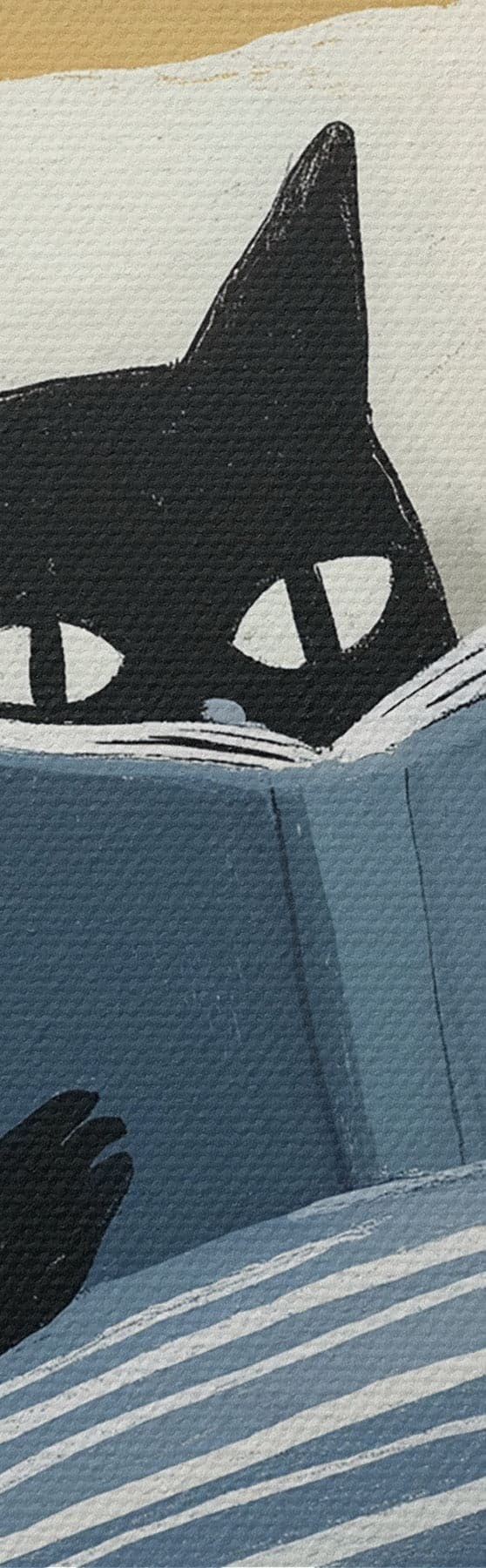 Glezna minimāla plakana ilustrācija, kurā attēlota melna kaķe, kas gultā lasa grāmatu Nr s48117