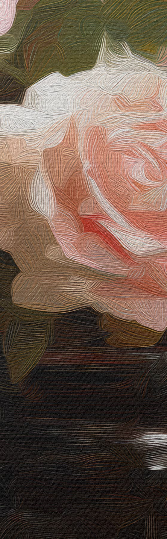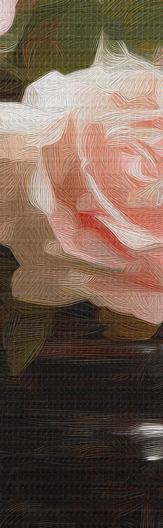 Smalkais diegu pinums uz šī audekla atgādina profesionālu mākslinieku audeklu virsmu.