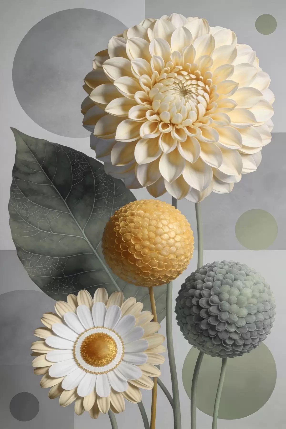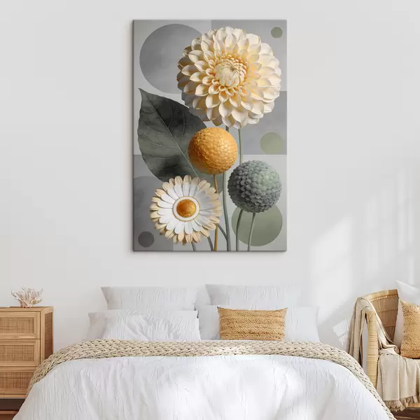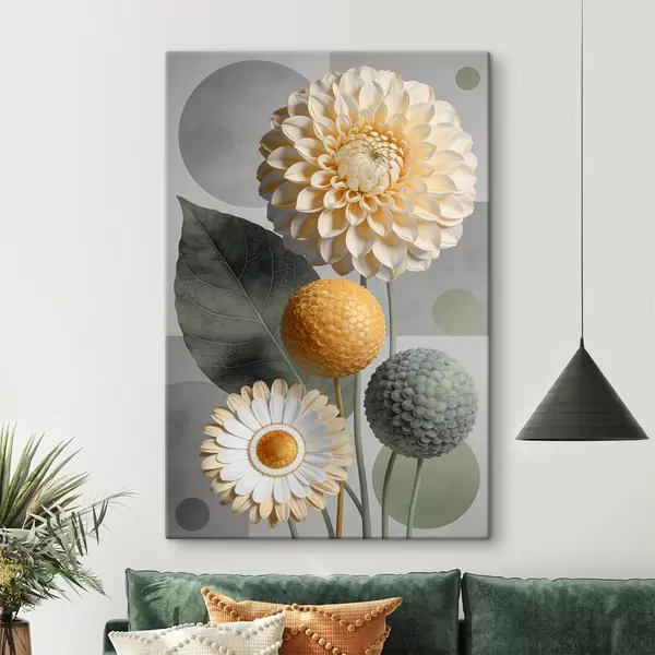 Glezna Lieli abstrakti ziedi ar ģeometriskiem elementiem s48178